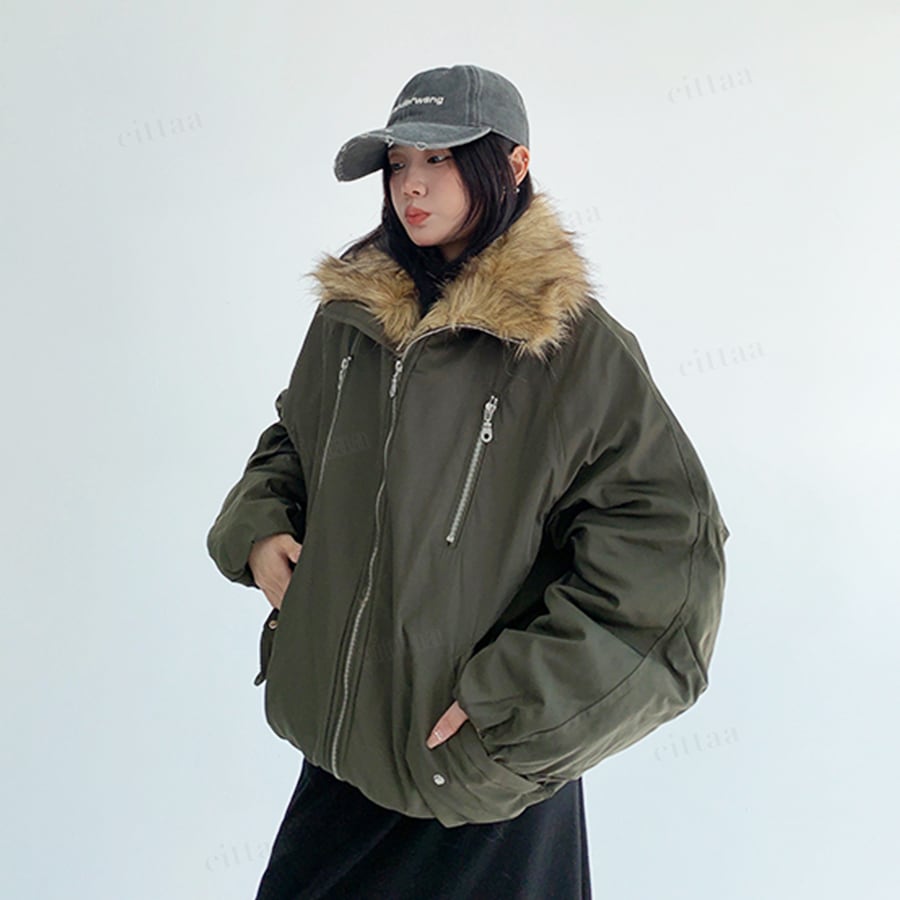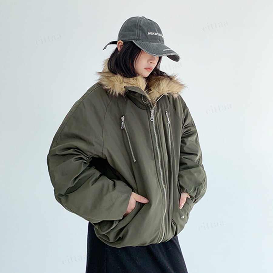 ★予約★D-704 2025秋新作♡ファーライン中綿フードブルゾン グリーン