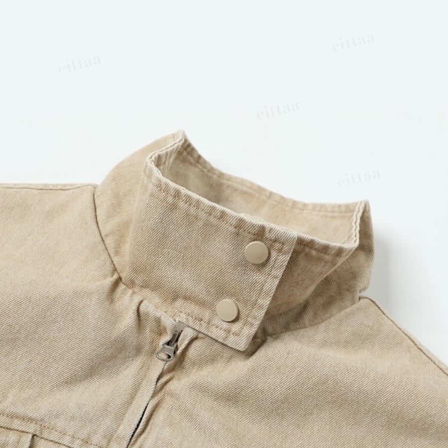 ★予約★D-699 2025秋新作♡ホワイトファー付きジップアップデニムブルゾン ベージュ