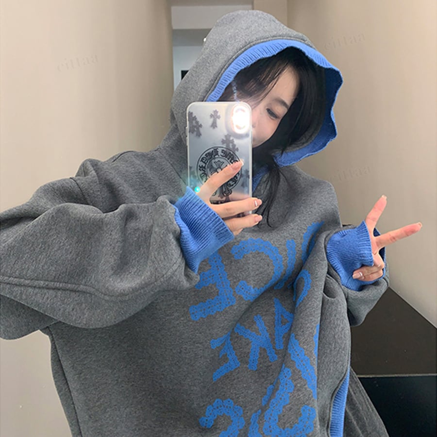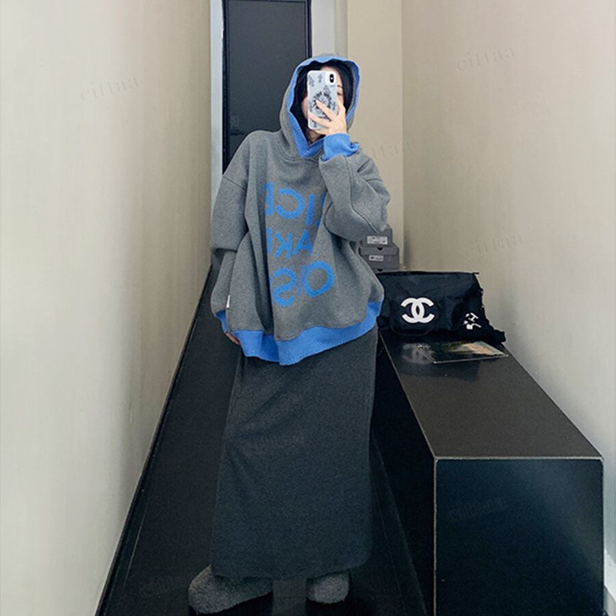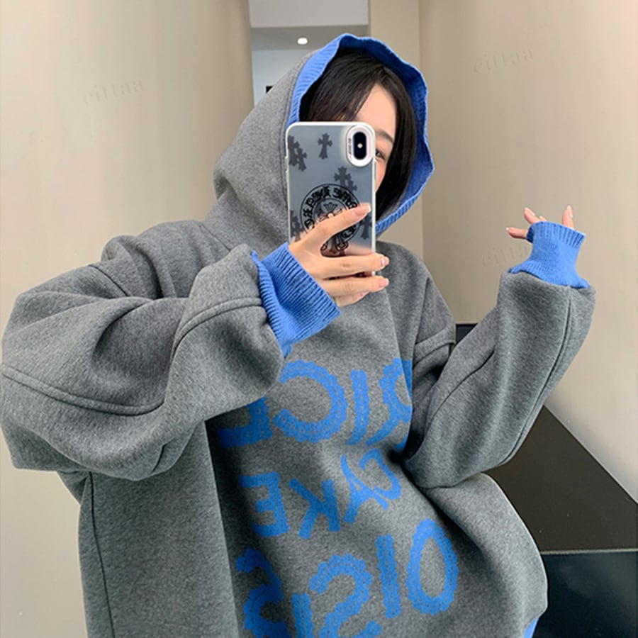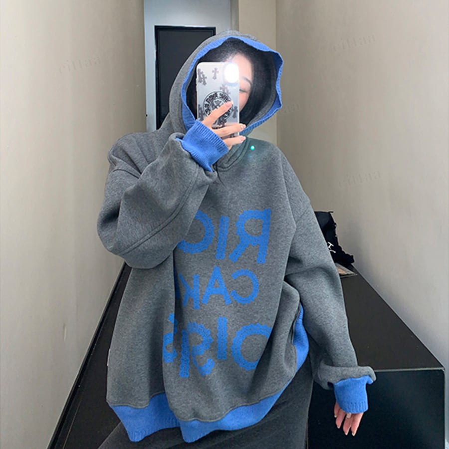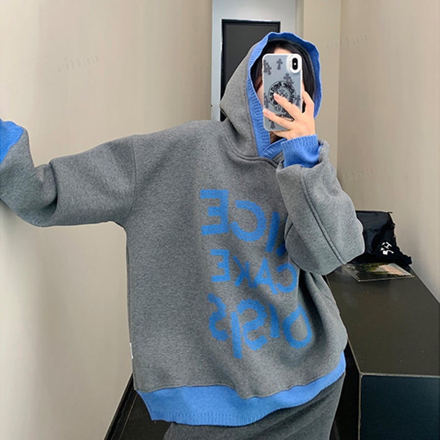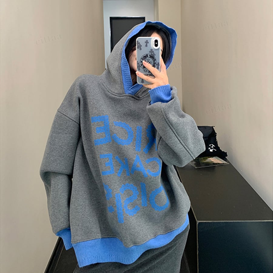 ★予約★D-701 2025秋新作♡RICECAKE配色デザインフーディー グレー