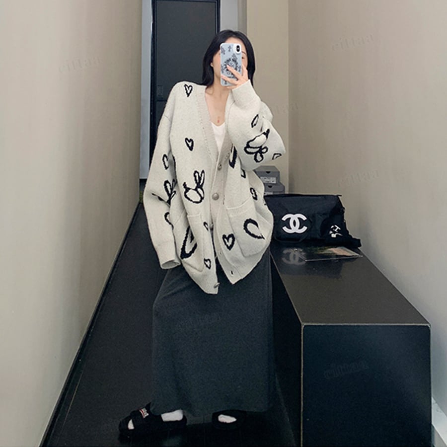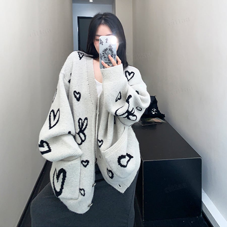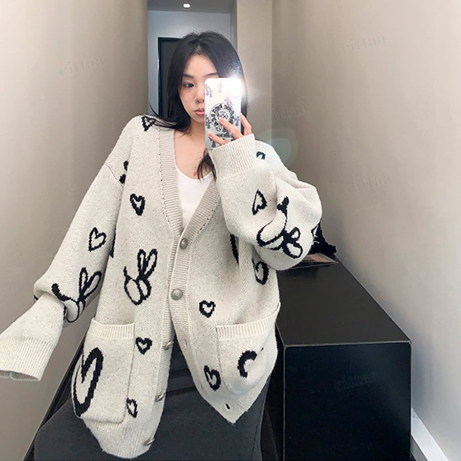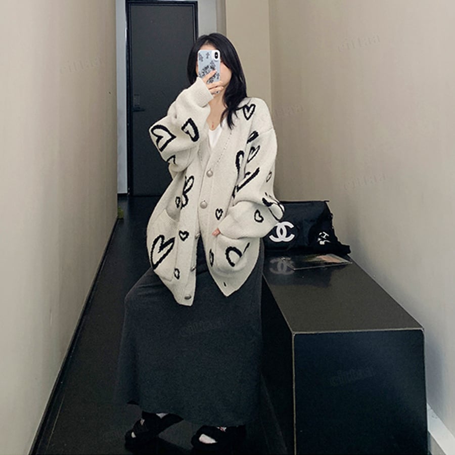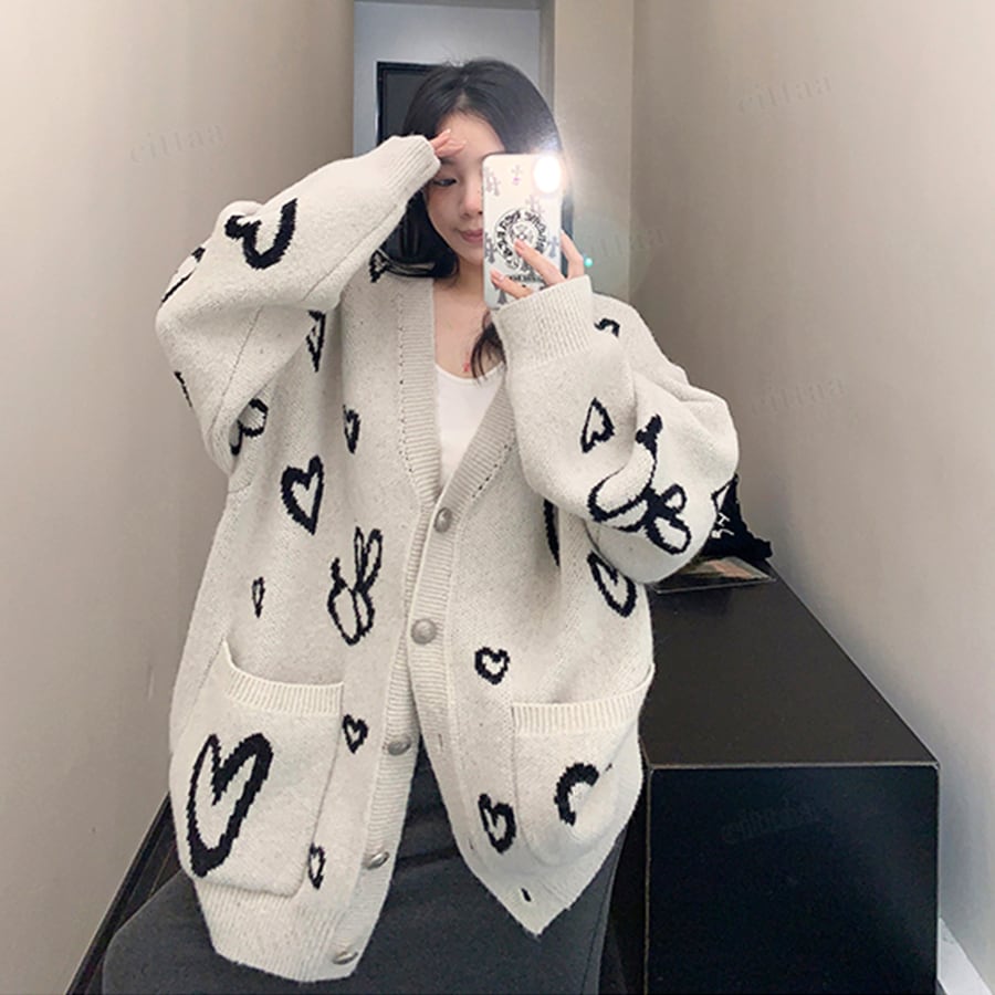 ✔︎ こなれ感たっぷりハート柄ニットカーディガン