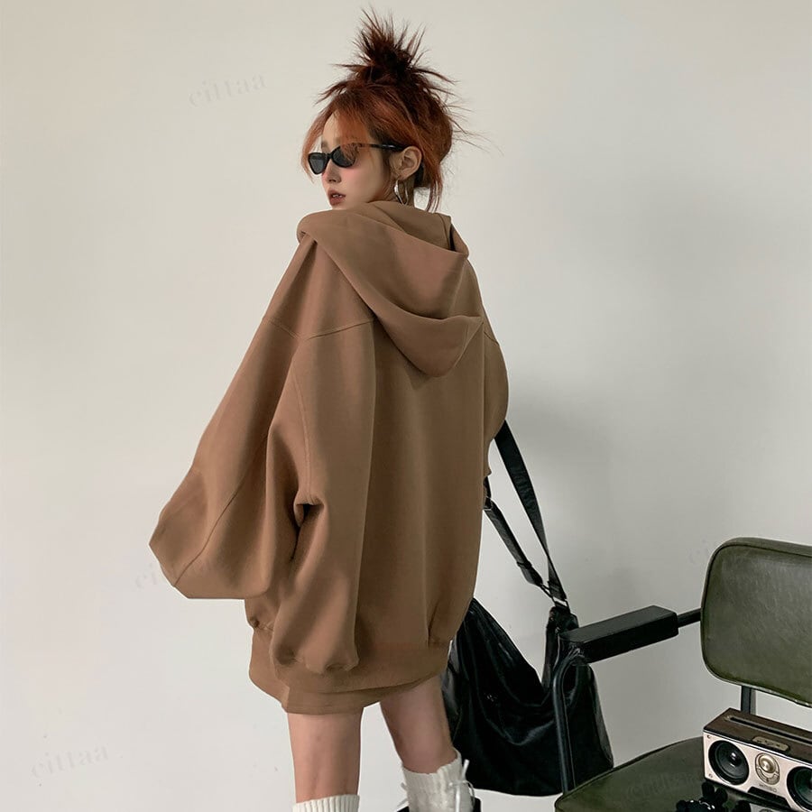 ★予約★D-708 2025秋新作♡【セットアップ可能】オーバーサイズダブルジップパーカー ブラウン