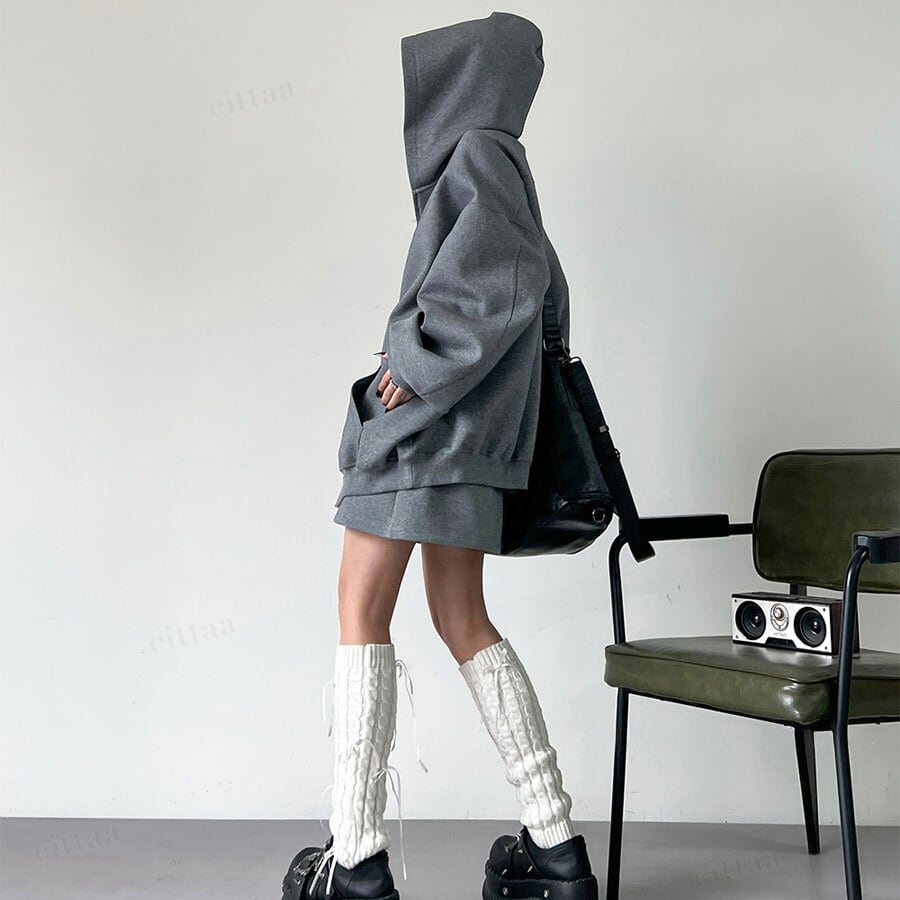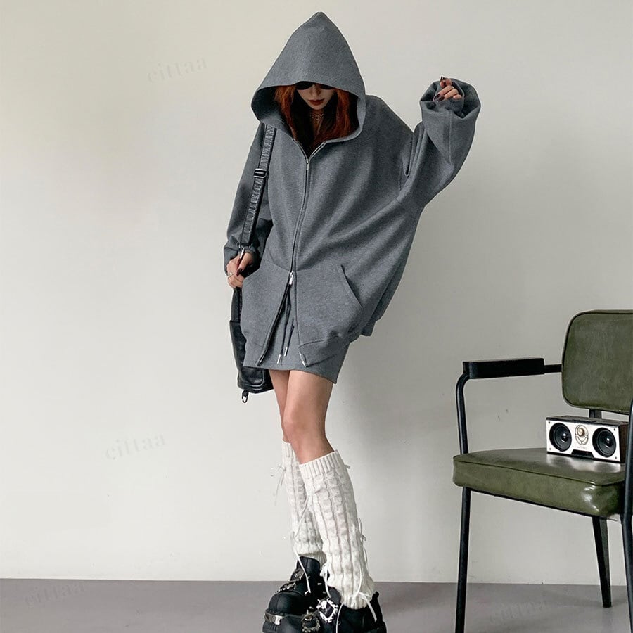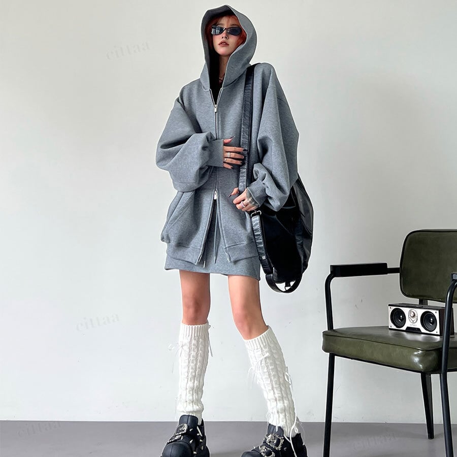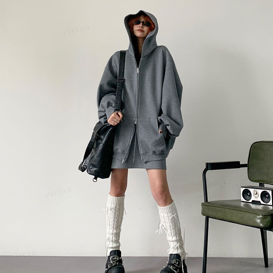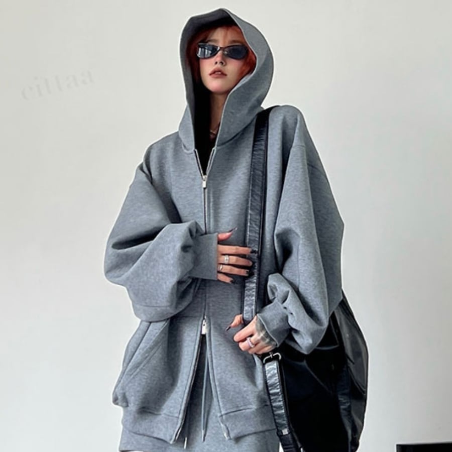 ★予約★D-708 2025秋新作♡【セットアップ可能】オーバーサイズダブルジップパーカー グレー