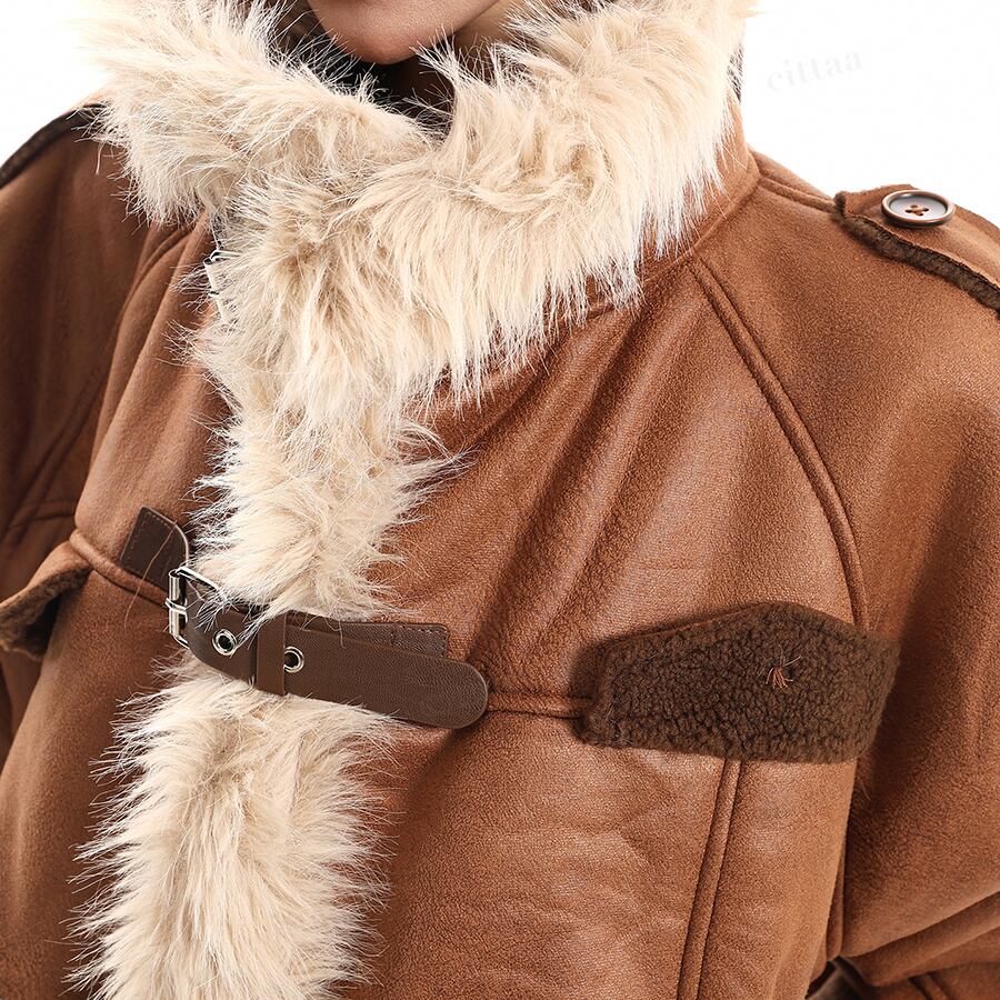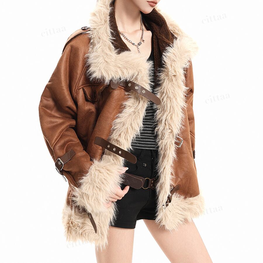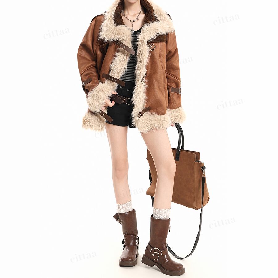 ★予約★D-715 2025秋新作♡ベルトデザインムートンファーコート キャメル