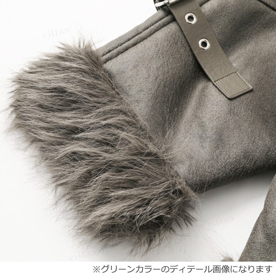 上品なふわふわファーと洗練されたベルトデザインで、大人の存在感を演出。シンプルなコーデにプラスするだけでスタイルがぐっと華やぎます。バックのパッチデザインで、後ろ姿まで抜かりなく。