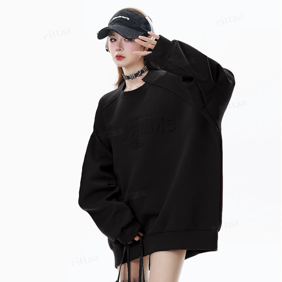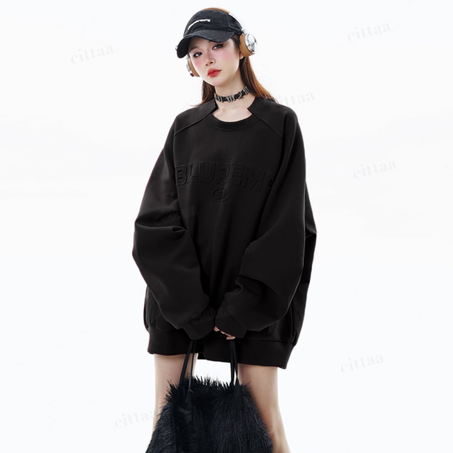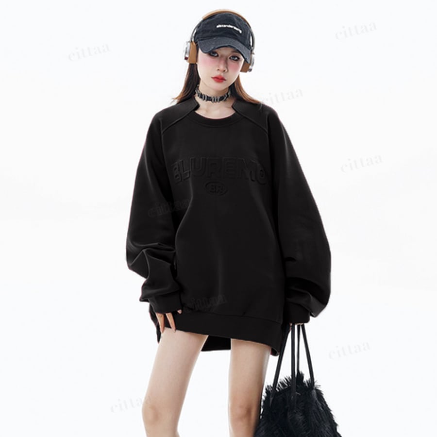 ★予約★D-717 2025秋新作♡BLUREMO変形襟エンボス加工ロゴスウェット ブラック