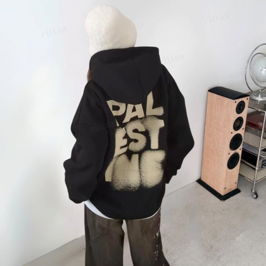 Y-4770 2025秋新作♡PALESTINEぼかしロゴフーディー ブラック 1104