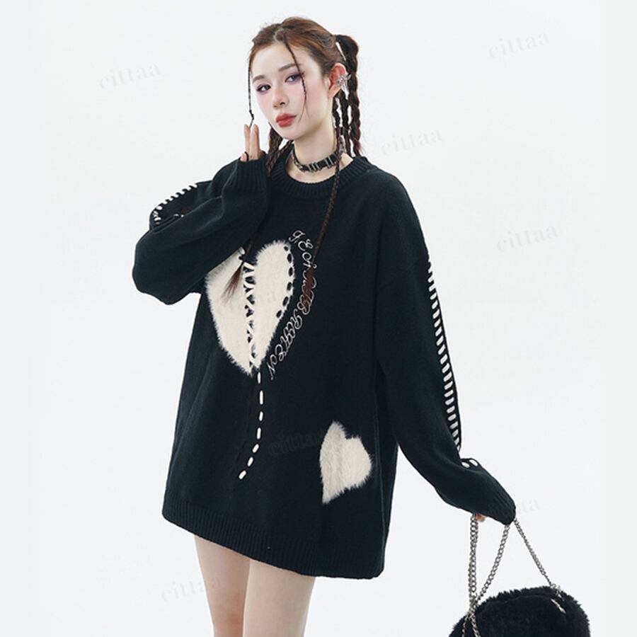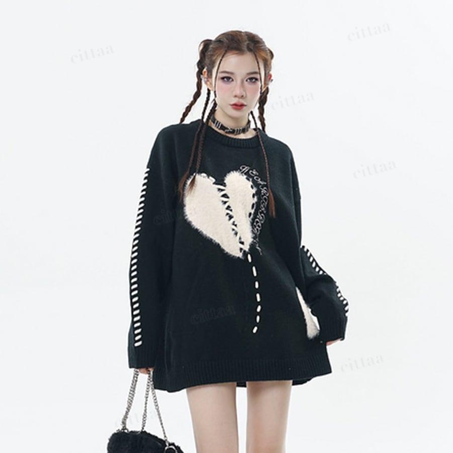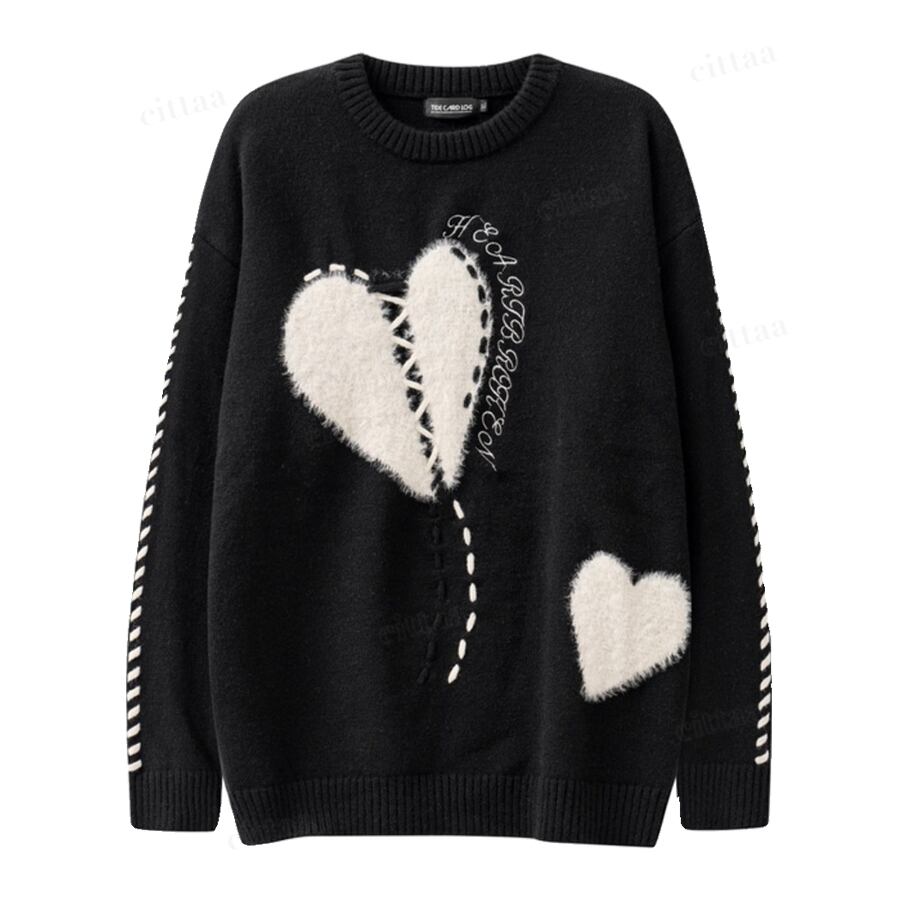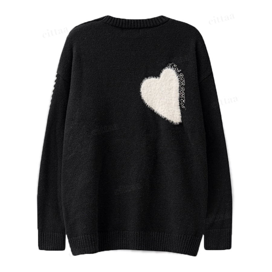 ★予約★D-719 2025秋新作♡HEARTステッチデザインニット ブラック