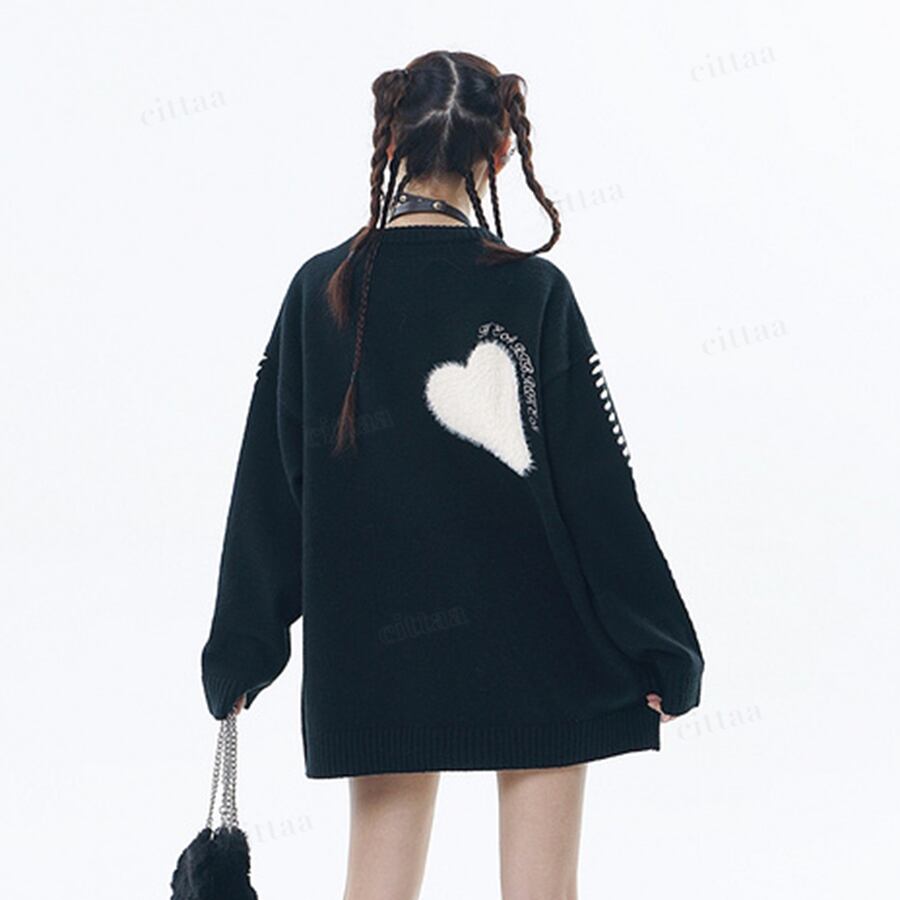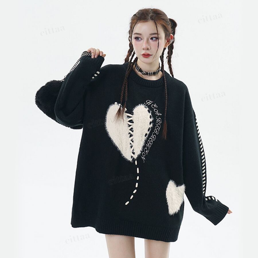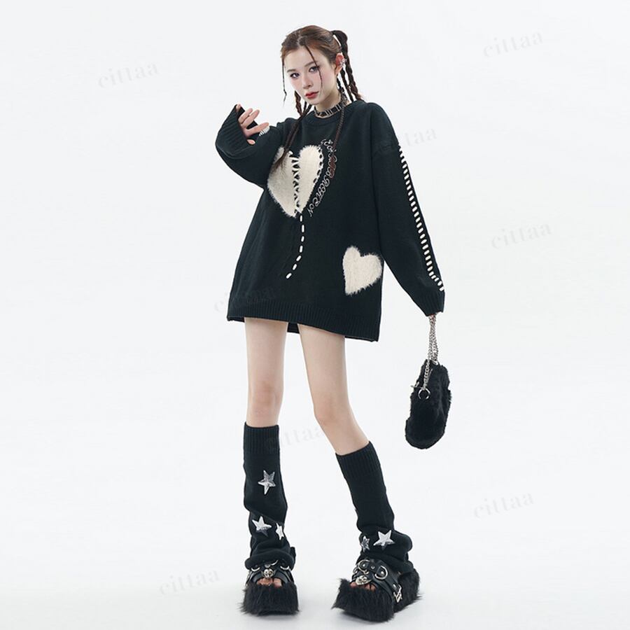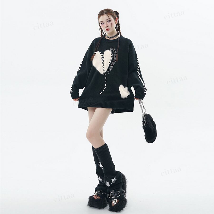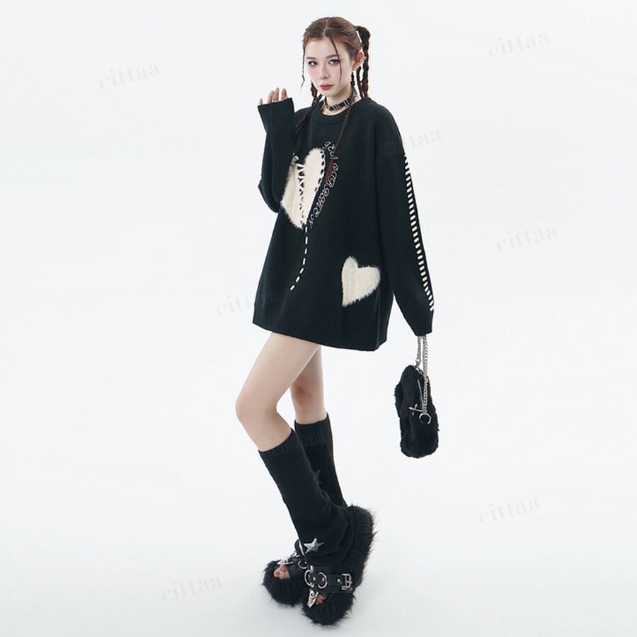 ★予約★D-719 2025秋新作♡HEARTステッチデザインニット ブラック