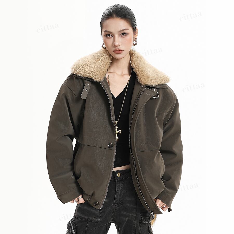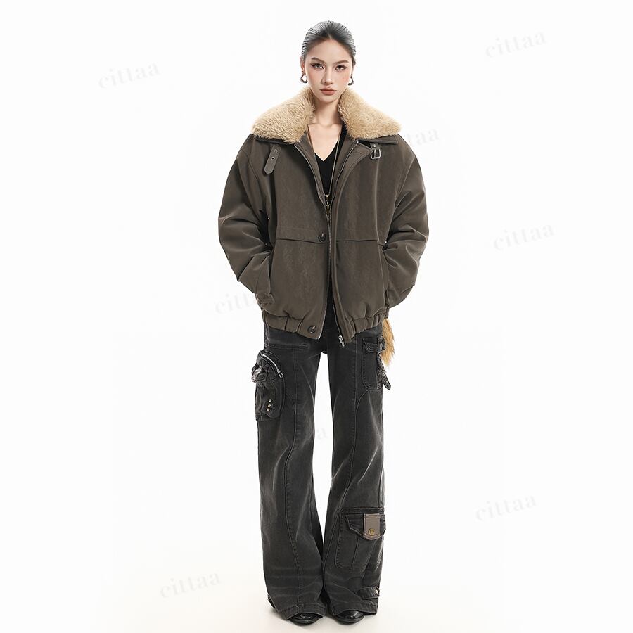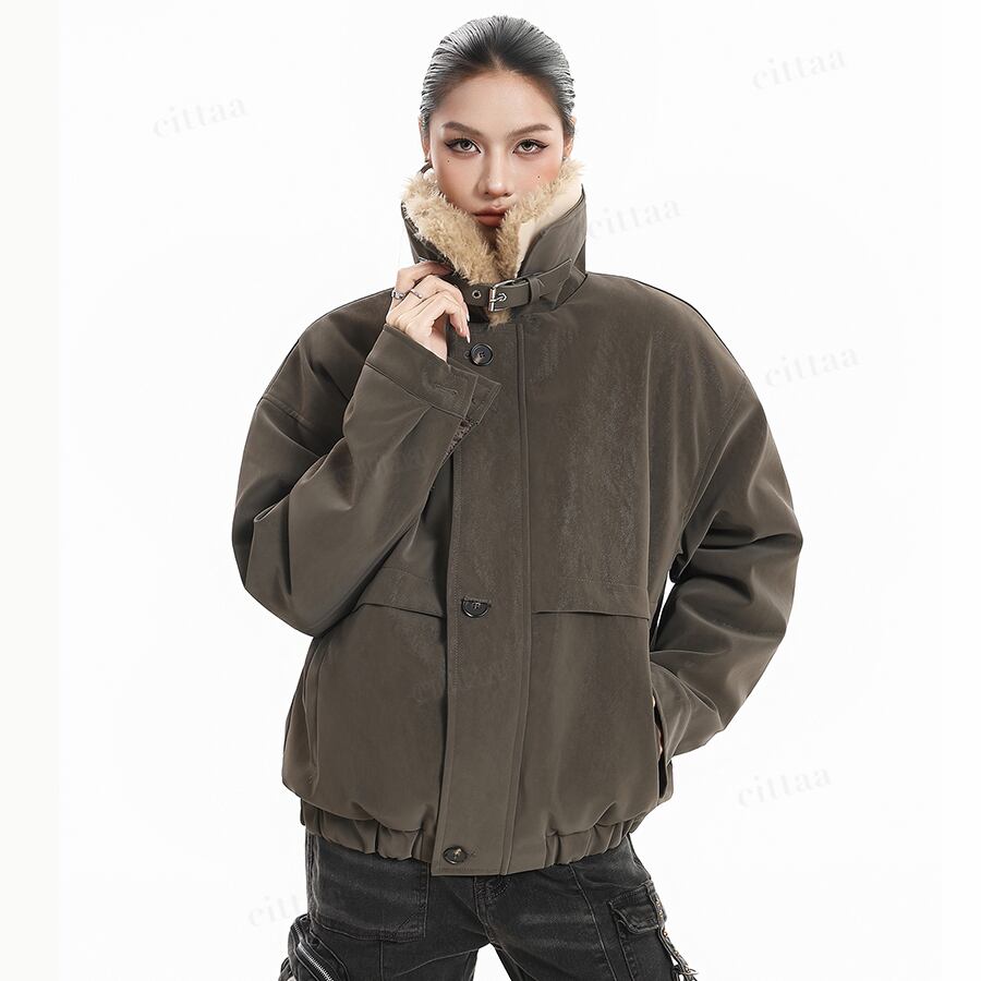 ★予約★D-720 2025秋新作♡ファー付きハイネックブルゾン ダークグレー