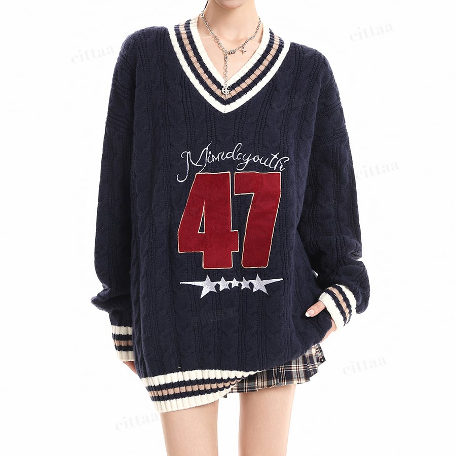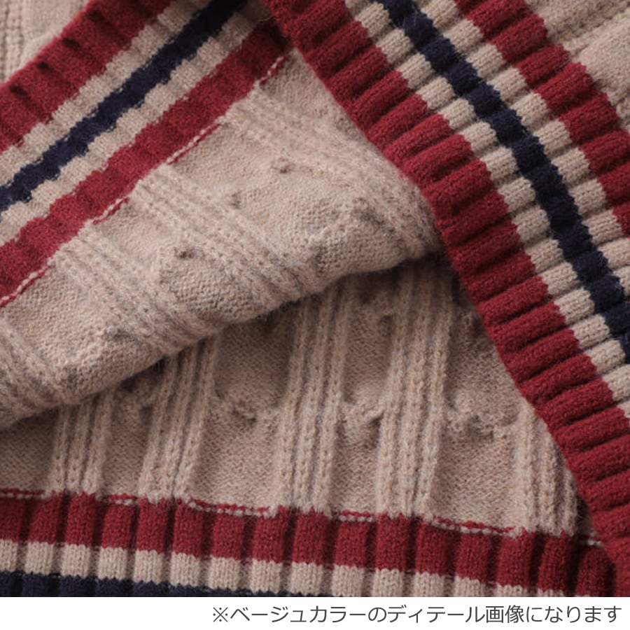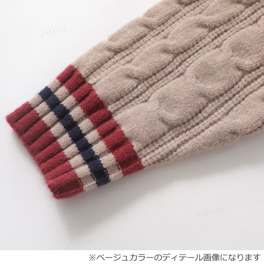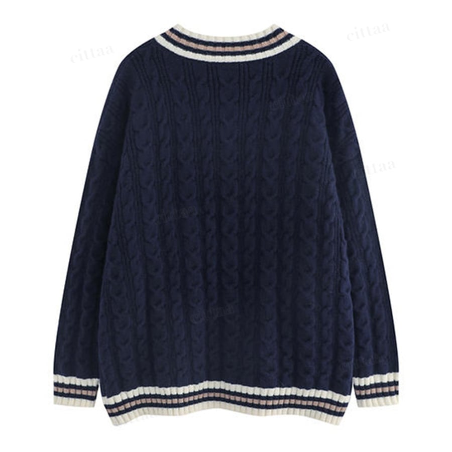 ★予約★D-721 2025秋新作♡47配色ラインVネックケーブルニット ネイビー