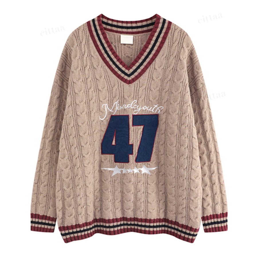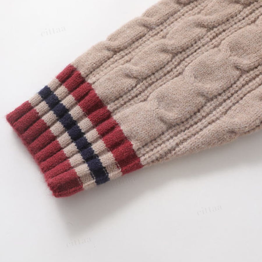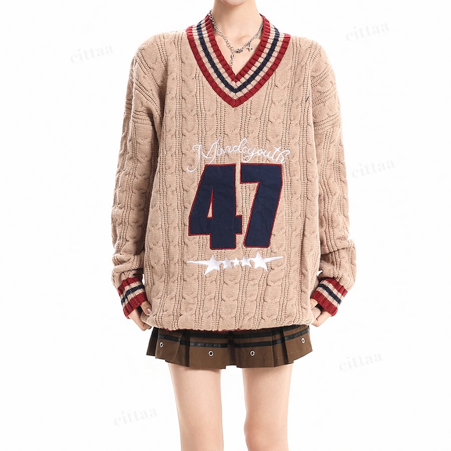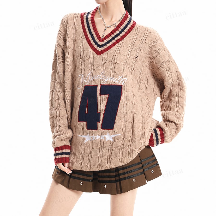 ★予約★D-721 2025秋新作♡47配色ラインVネックケーブルニット ベージュ