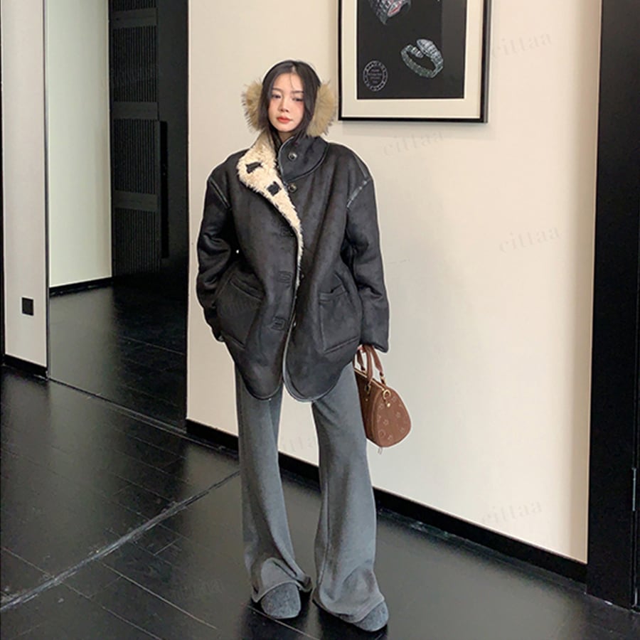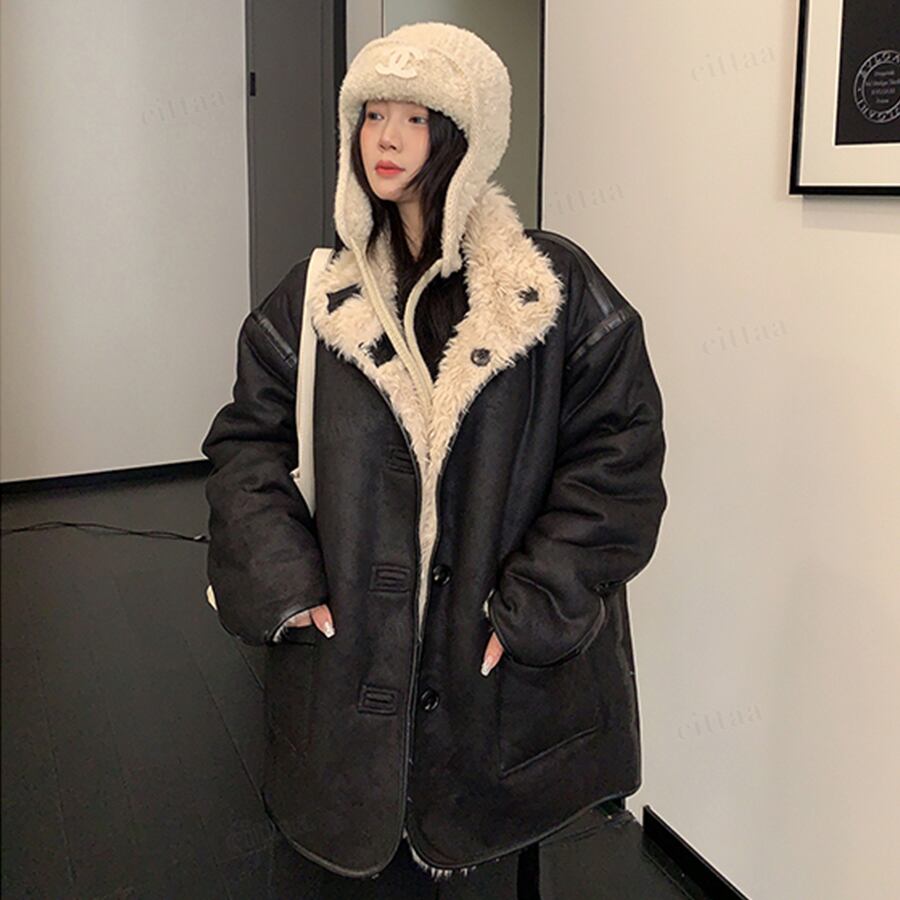 ★予約★D-726 2025秋新作♡リバーシブルプードルボアスエードジャケット ブラック