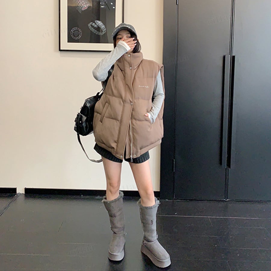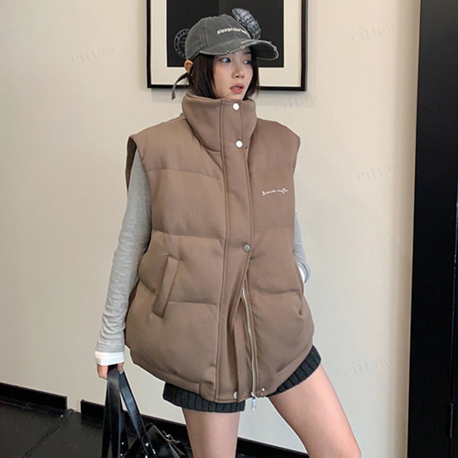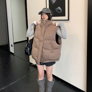 ★予約★D-728 2025秋新作♡ricecake刺繍ロゴ入り中綿ダウンベスト ブラウン