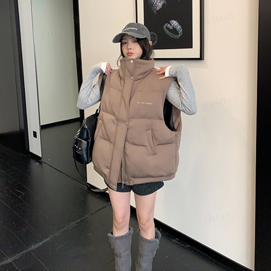 着回し力刺繍ロゴ入り中綿ダウンベスト♡
