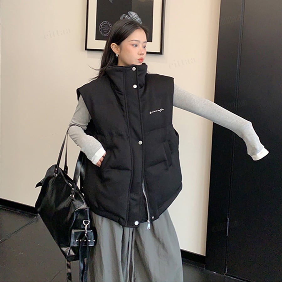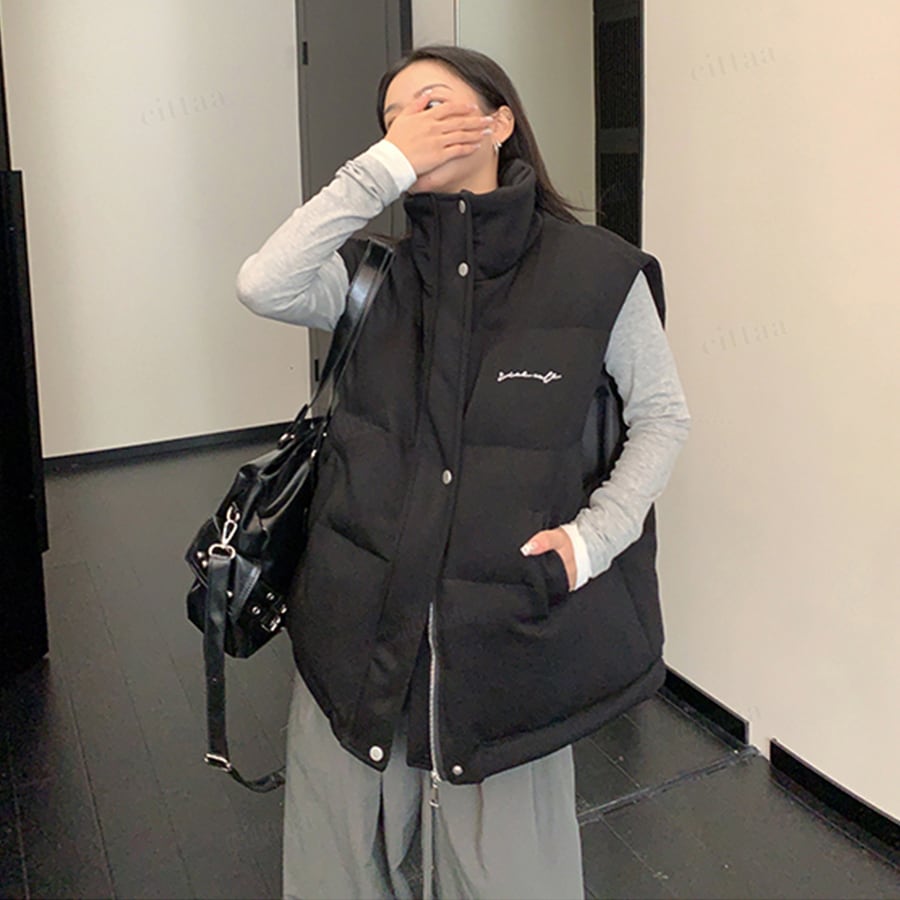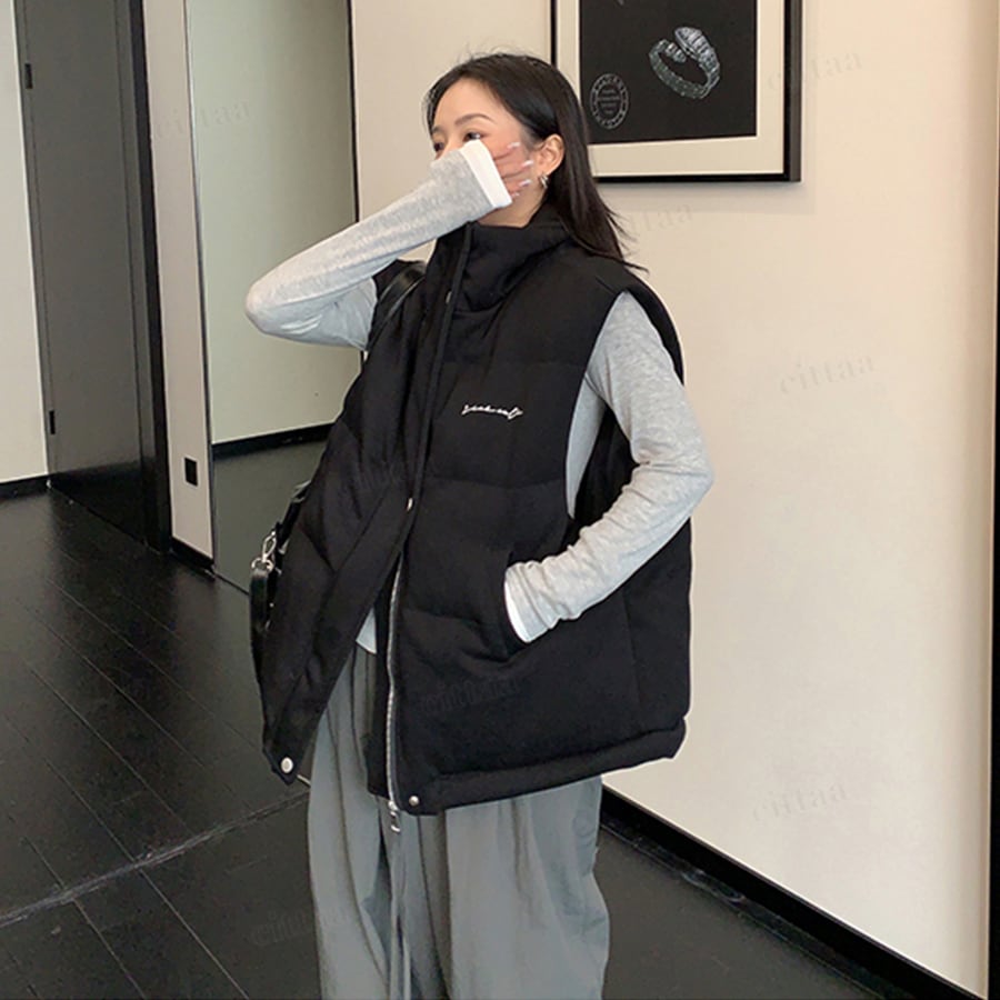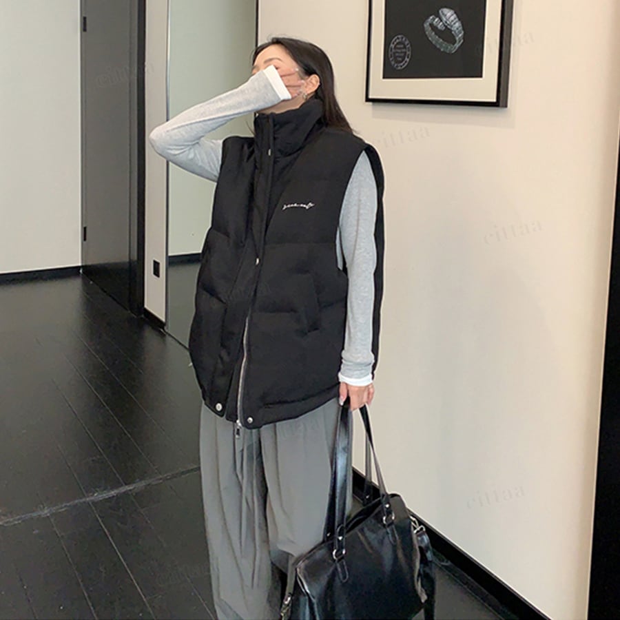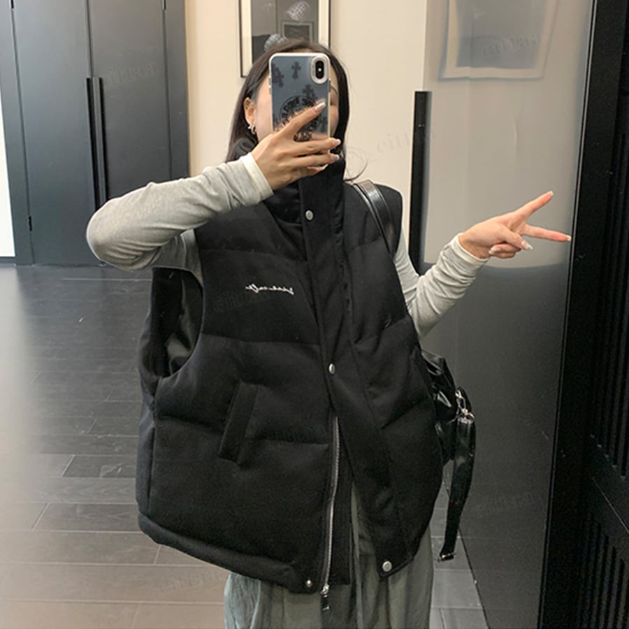 着回し力刺繍ロゴ入り中綿ダウンベスト♡