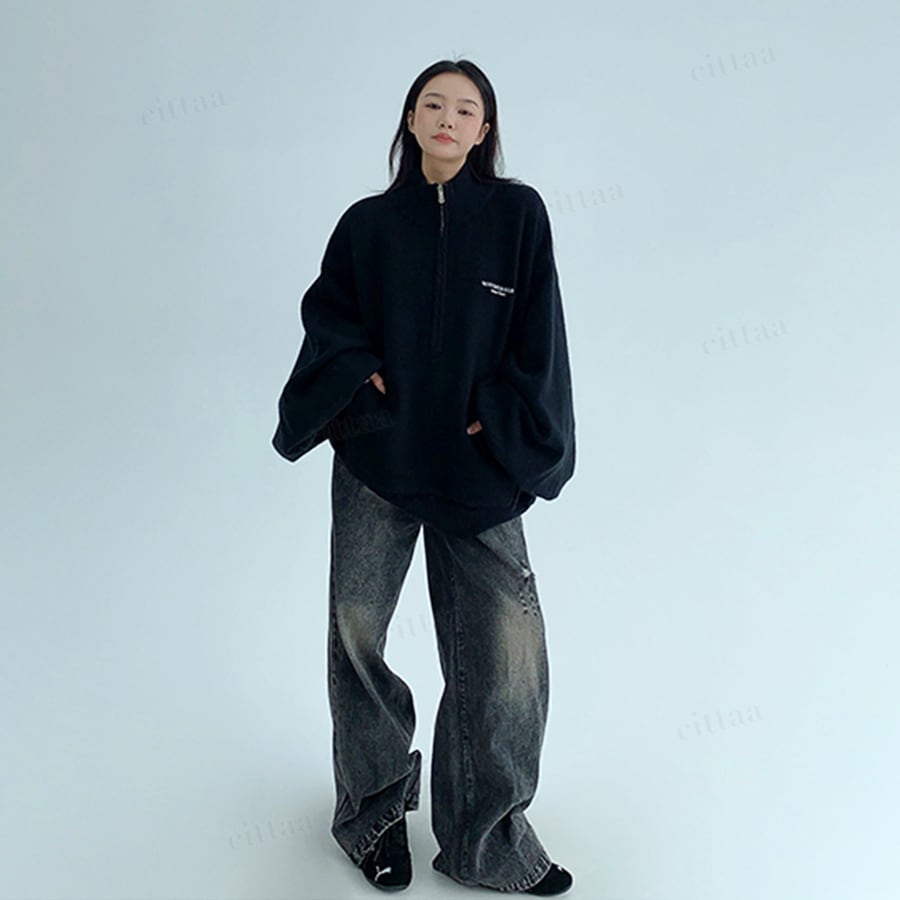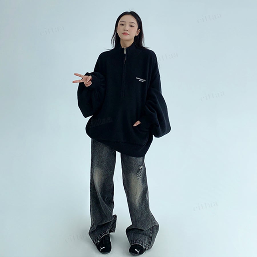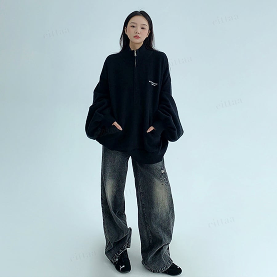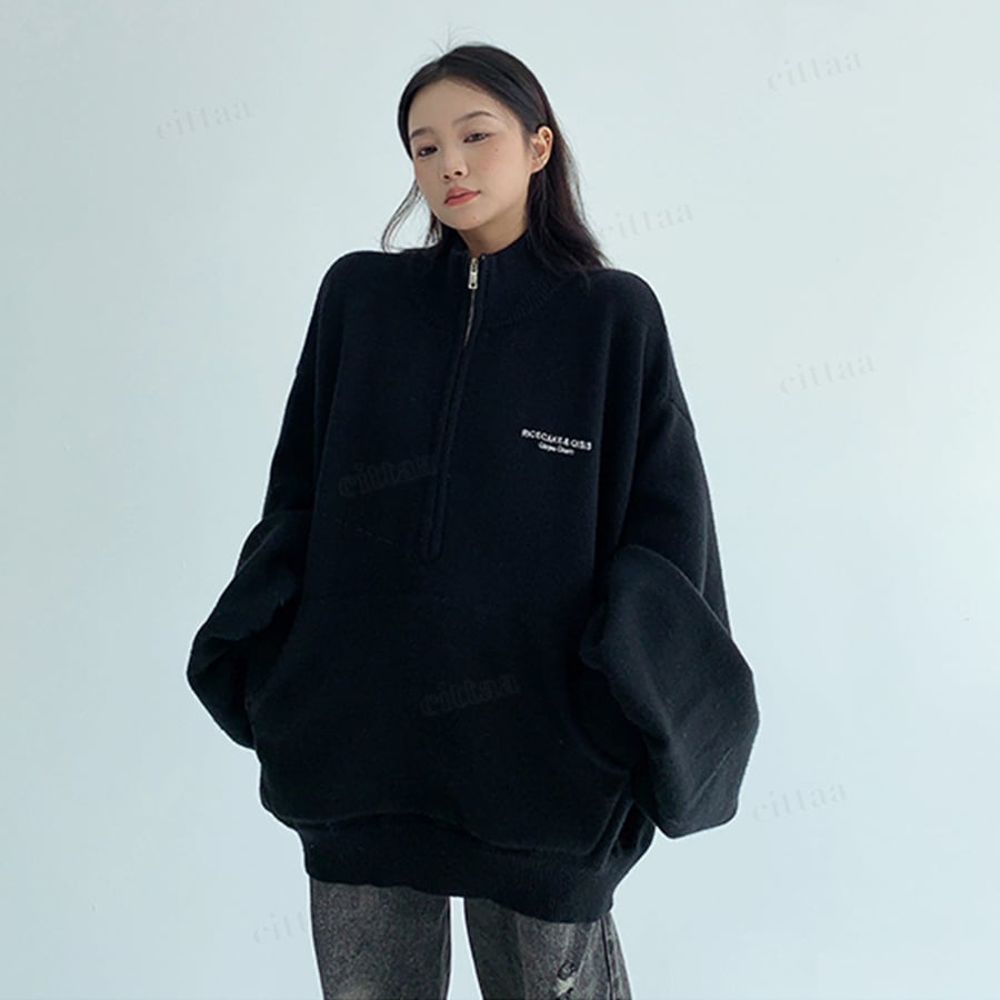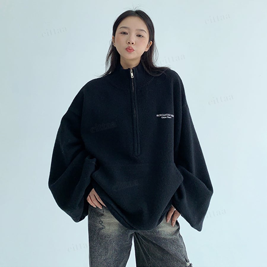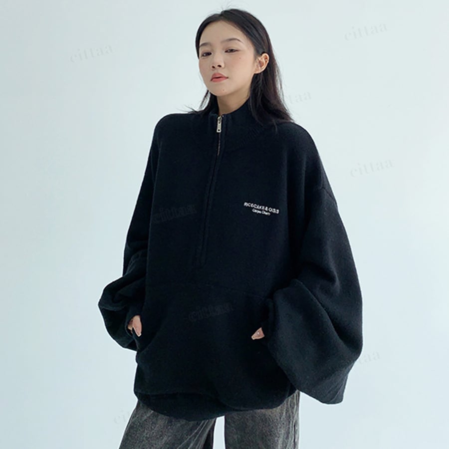 たぷんとボリューム袖がポイントのハーフジップニット♡