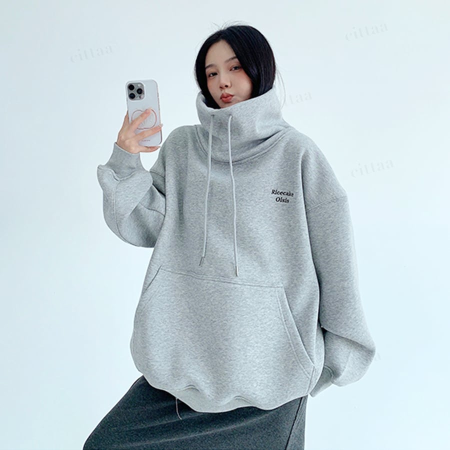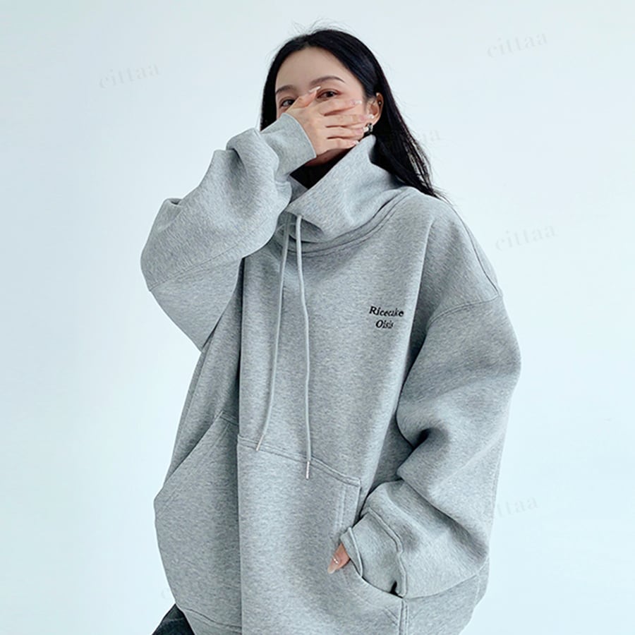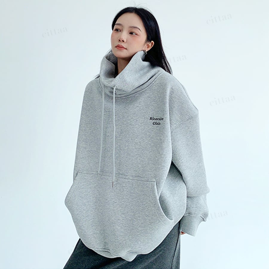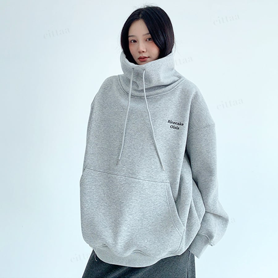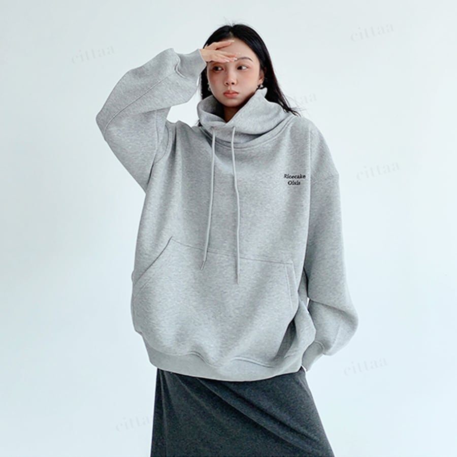 ★予約★D-732 2025秋新作♡Ricecake刺繍ロゴバックラベルハイネックスウェット グレー