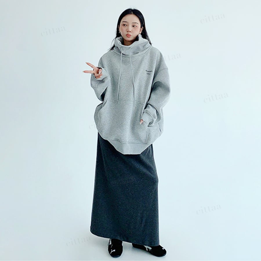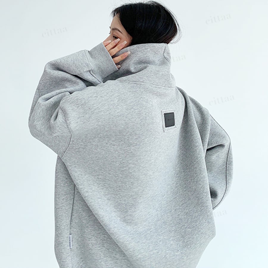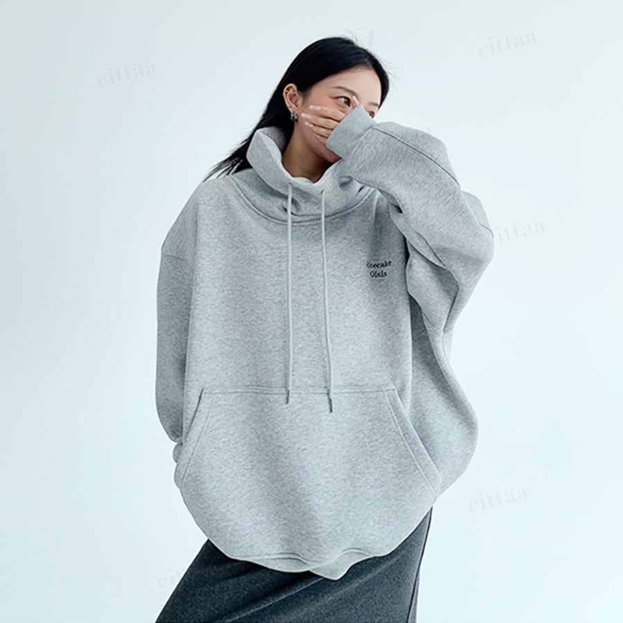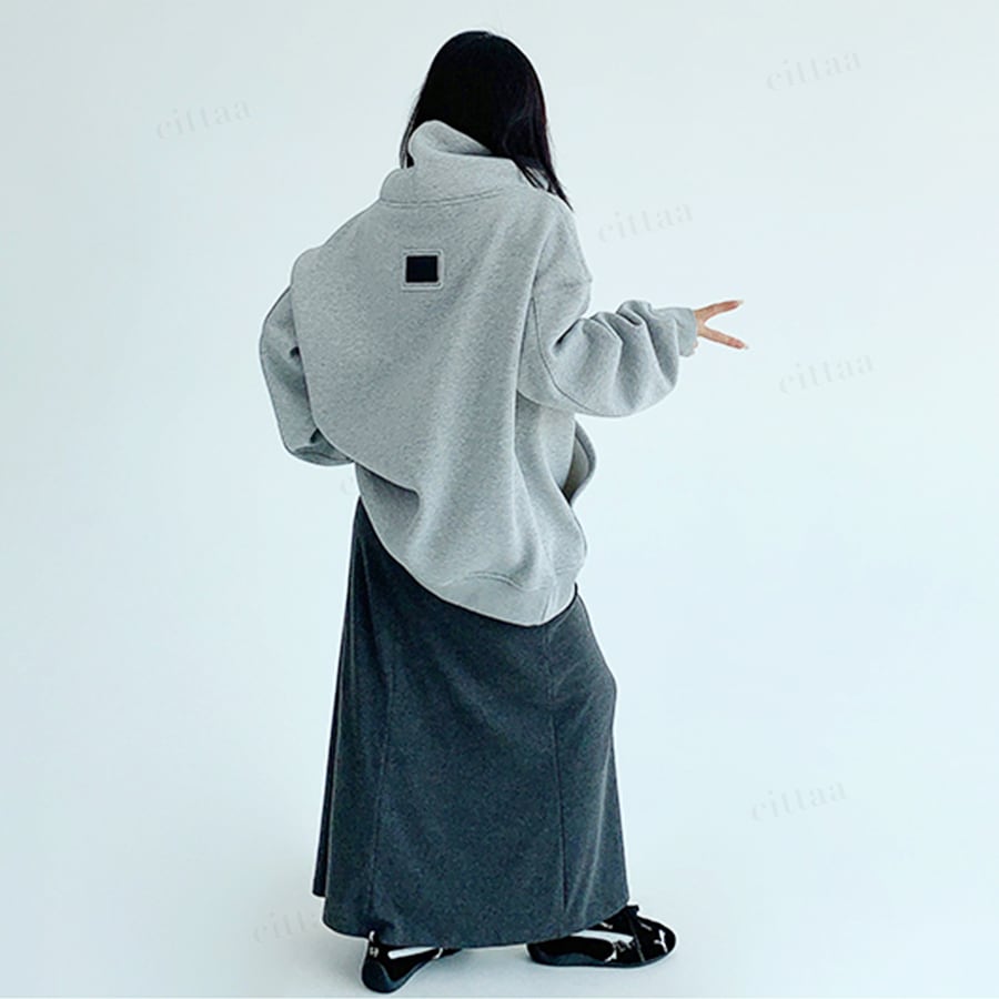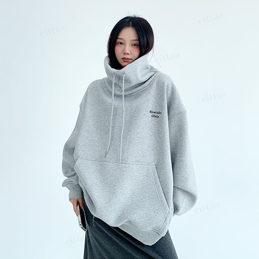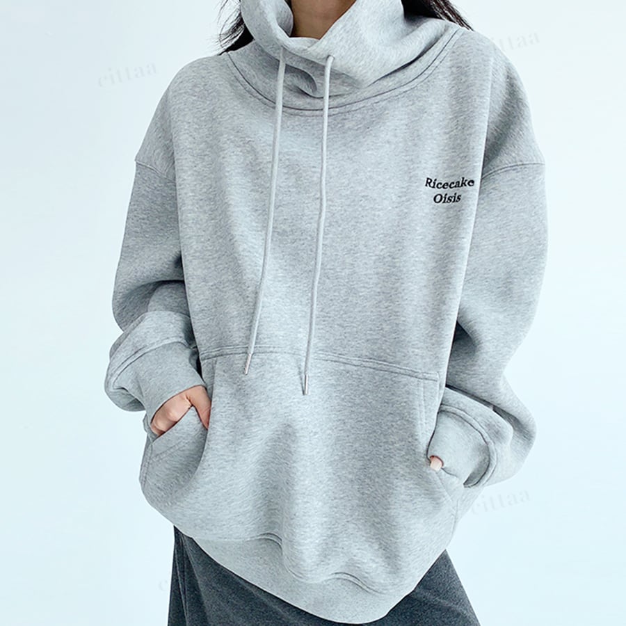 ★予約★D-732 2025秋新作♡Ricecake刺繍ロゴバックラベルハイネックスウェット グレー