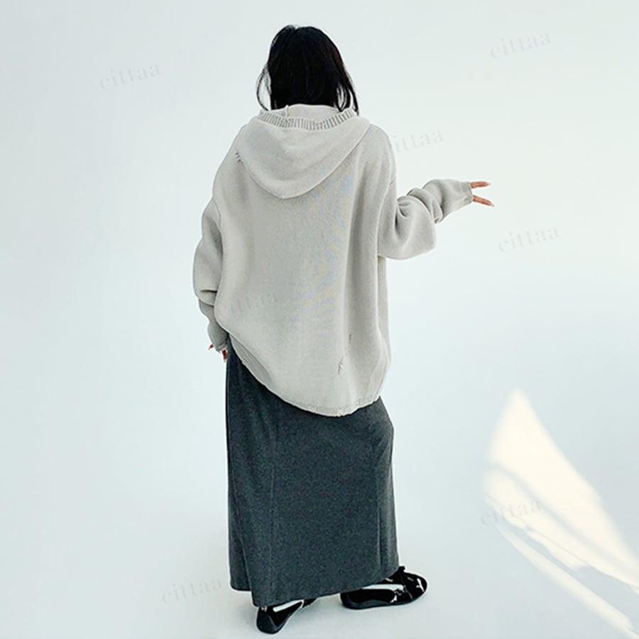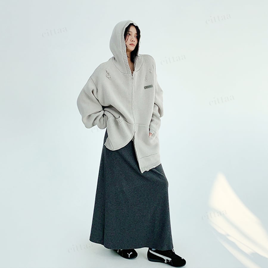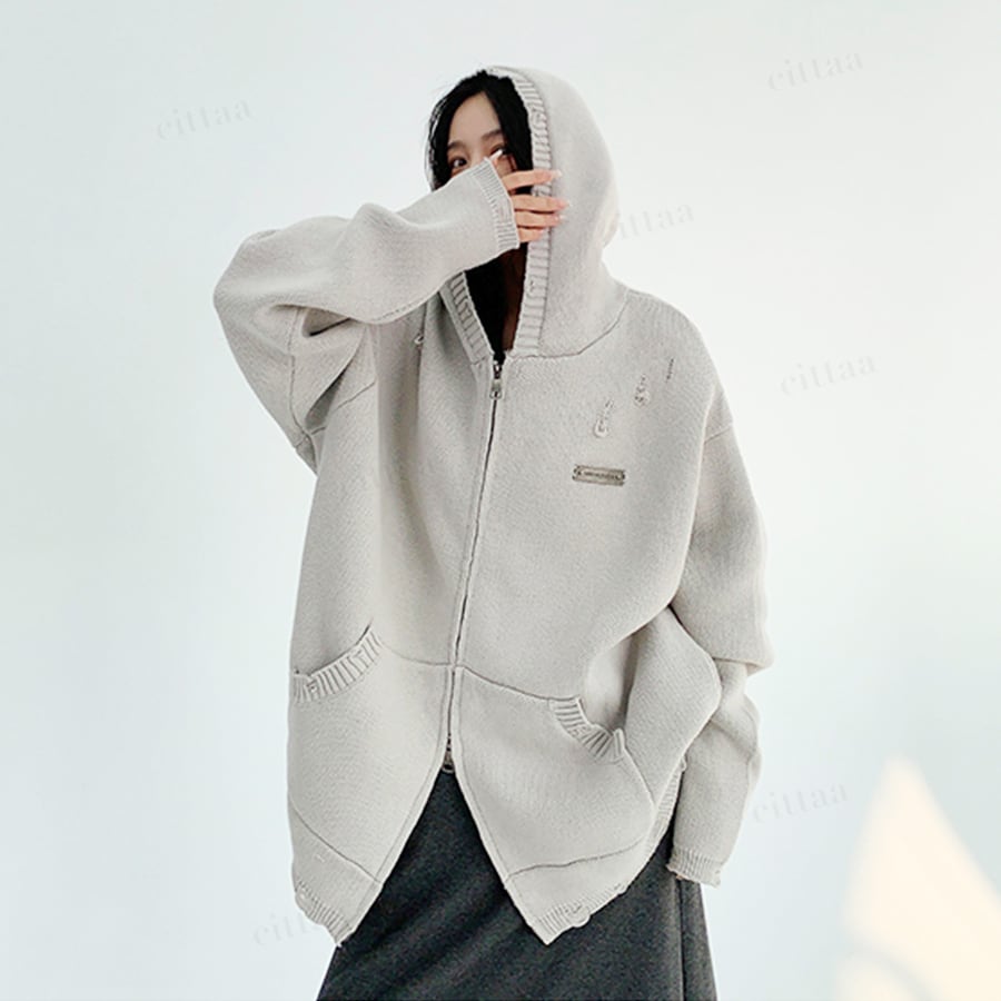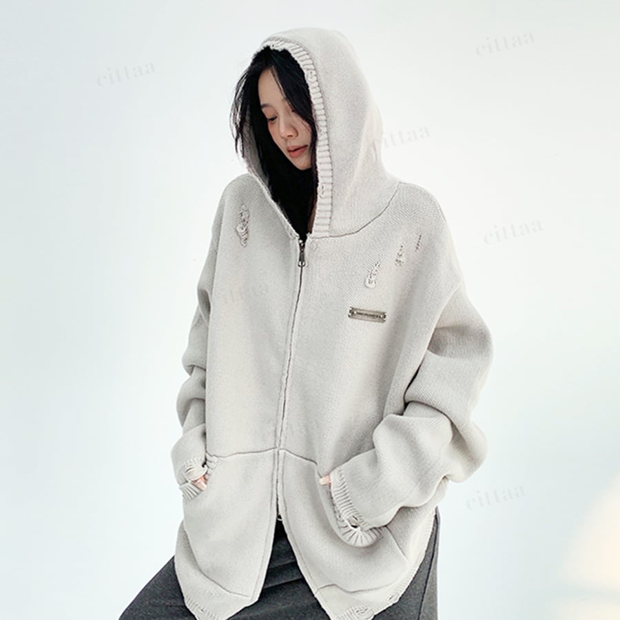 こなれ感たっぷりダメージデザインで差がつくダブルジップニットパーカー♡