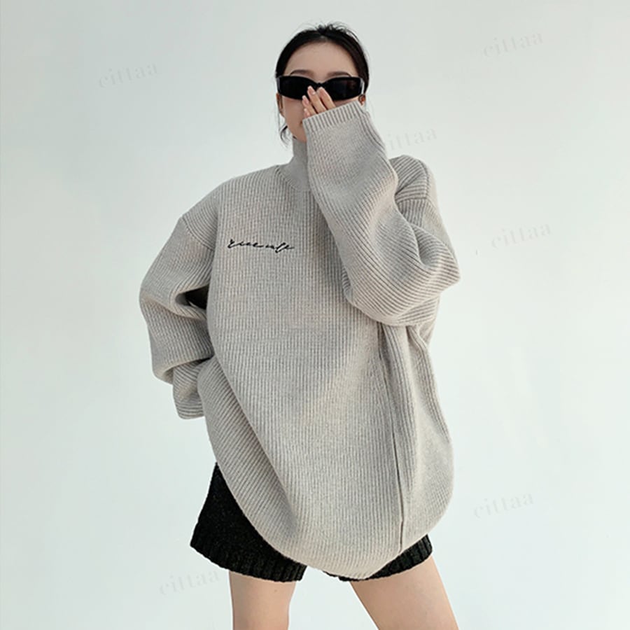 ★予約★D-734 2025秋新作♡アシメジップデザインハイネックニット グレー