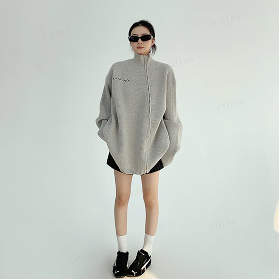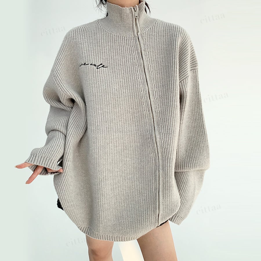 アシンメトリーな斜めジップデザインで差がつくジップアップニット♡