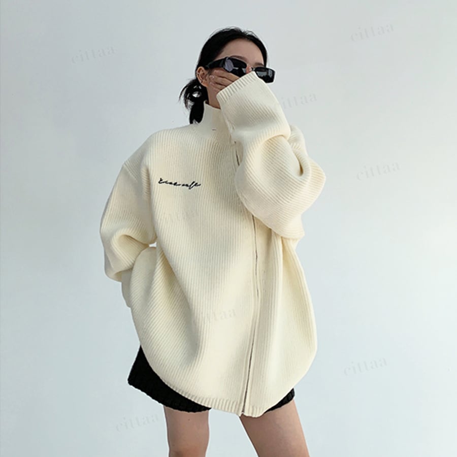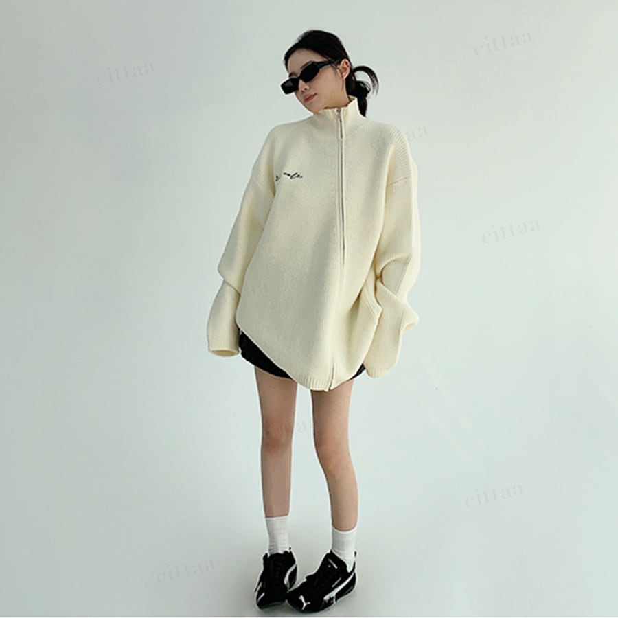 アシンメトリーな斜めジップデザインで差がつくジップアップニット♡