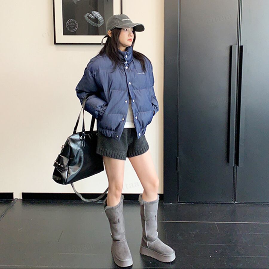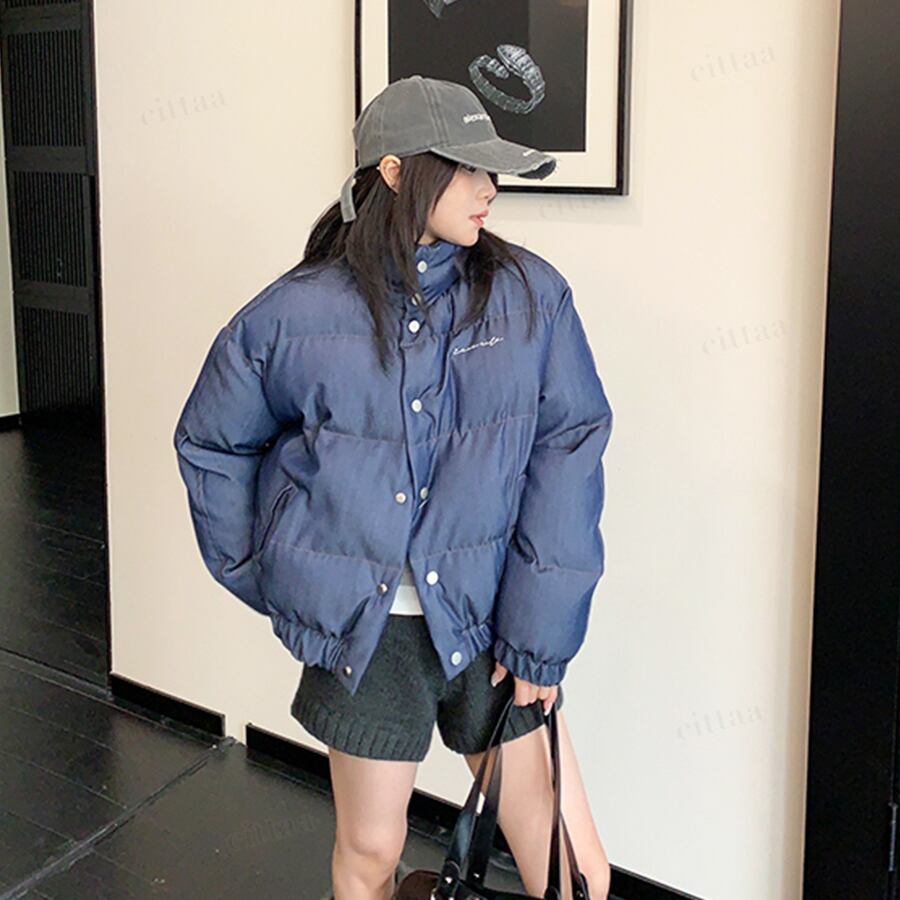 ★予約★D-735 2025秋新作♡軽量デニムコットン中綿ショート丈ジャケット ネイビー