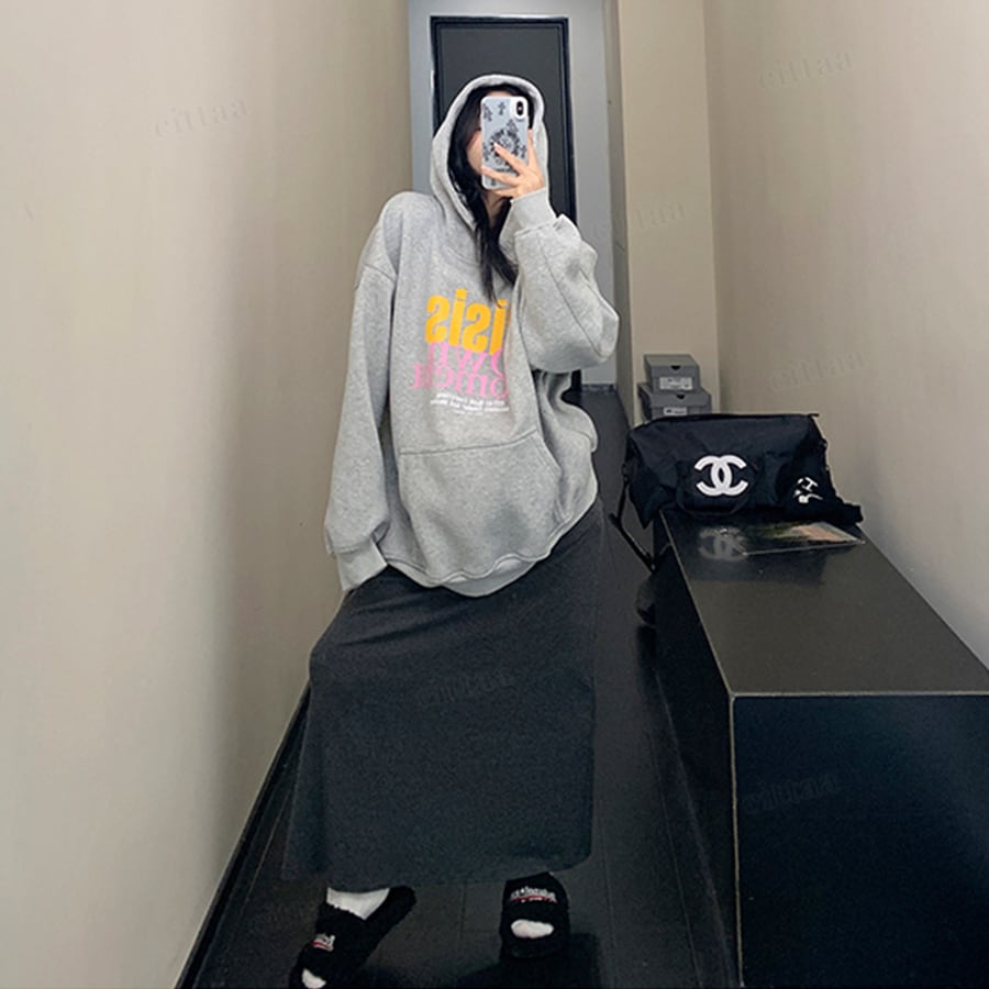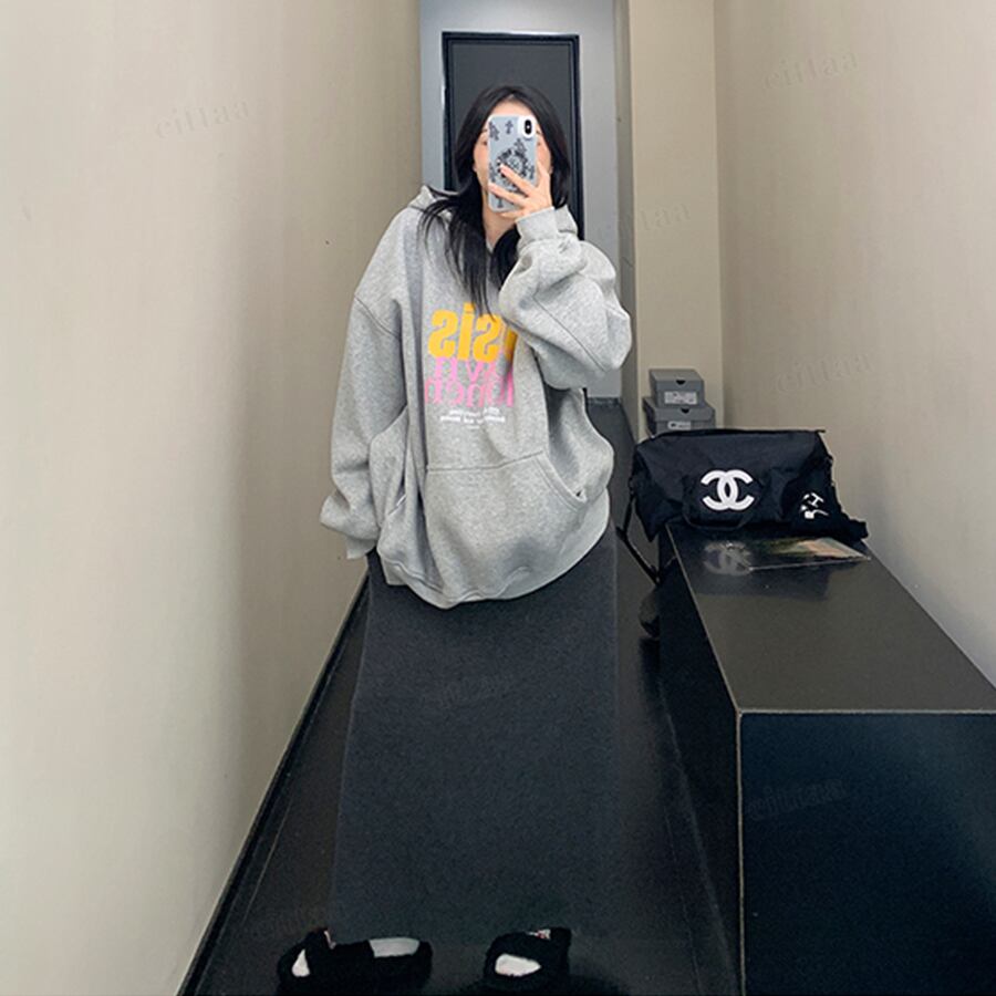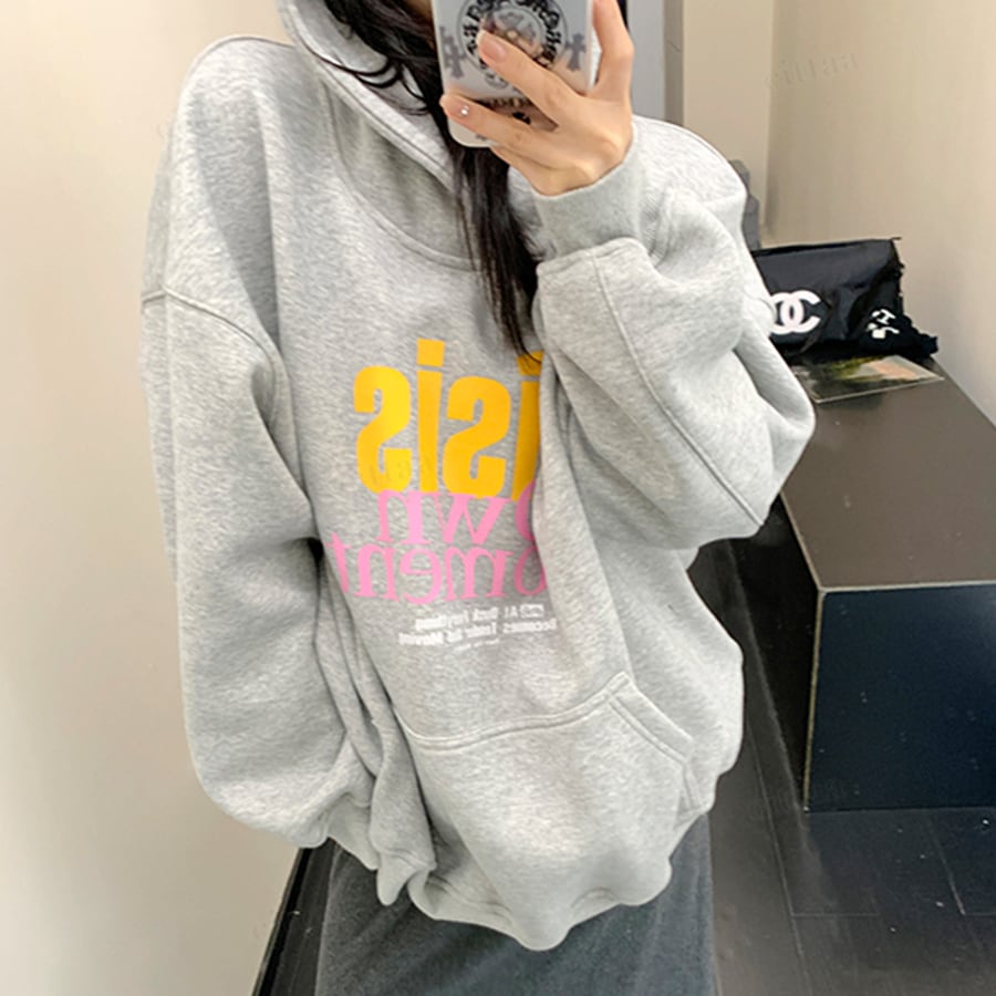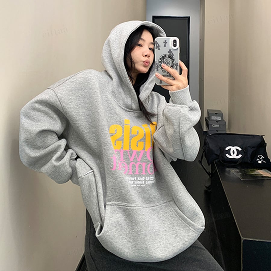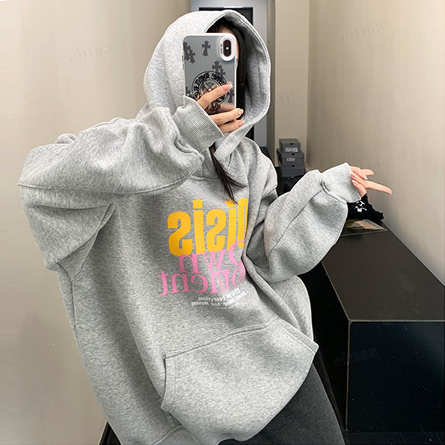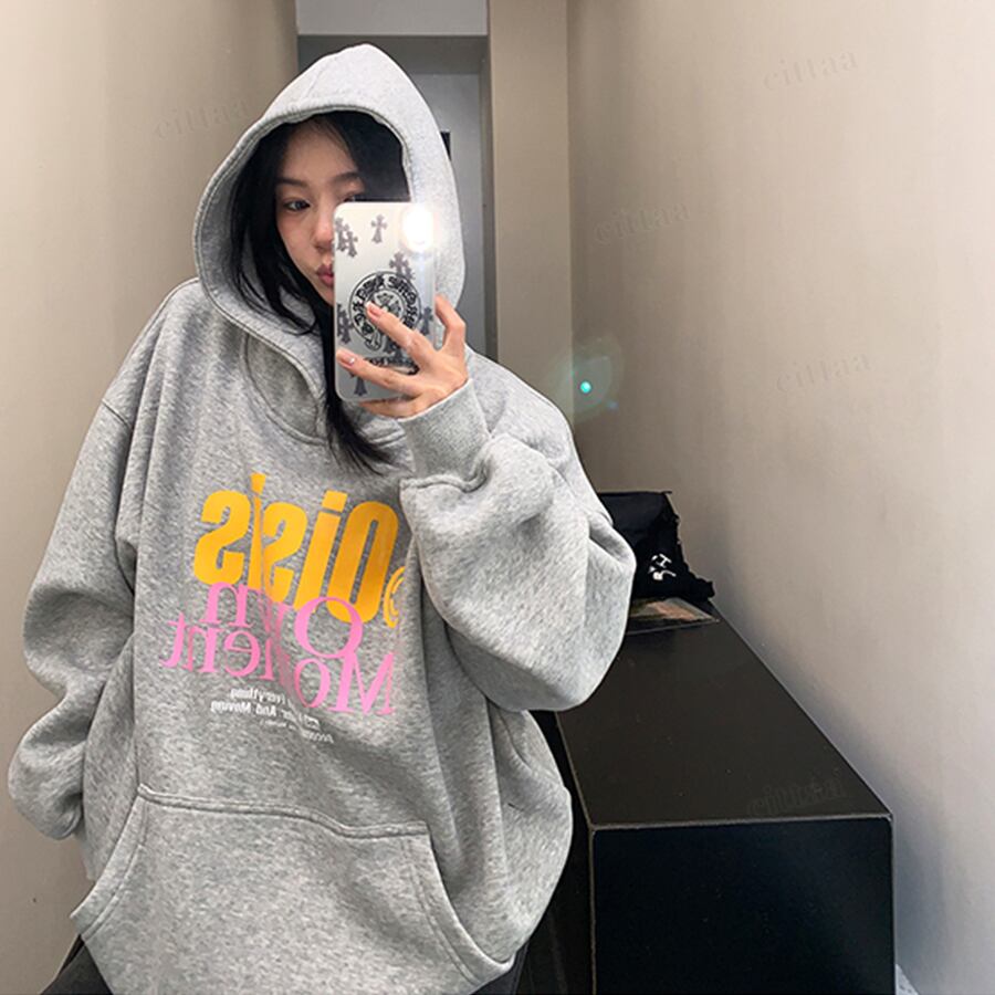 ★予約★D-737 2025秋新作♡Ownカラープリントフーディー グレー
