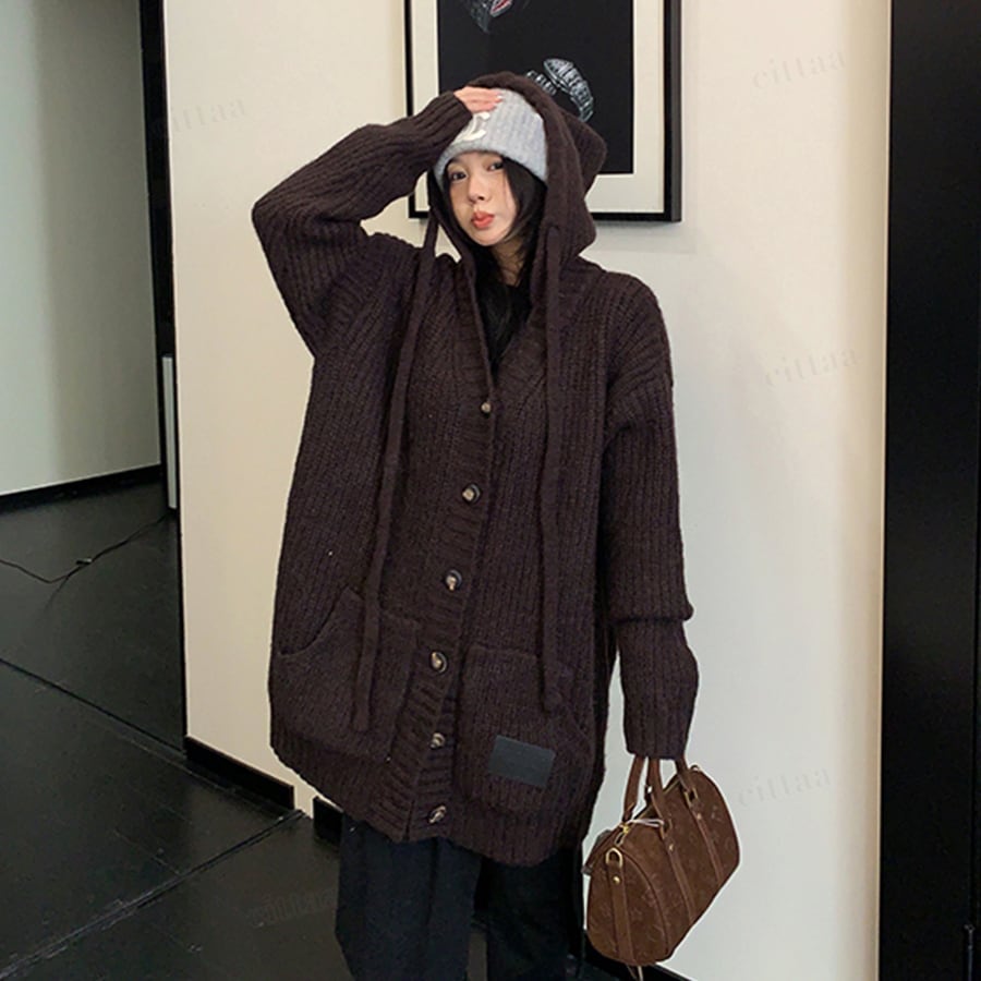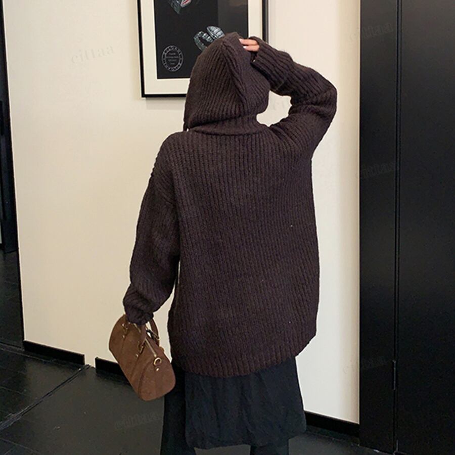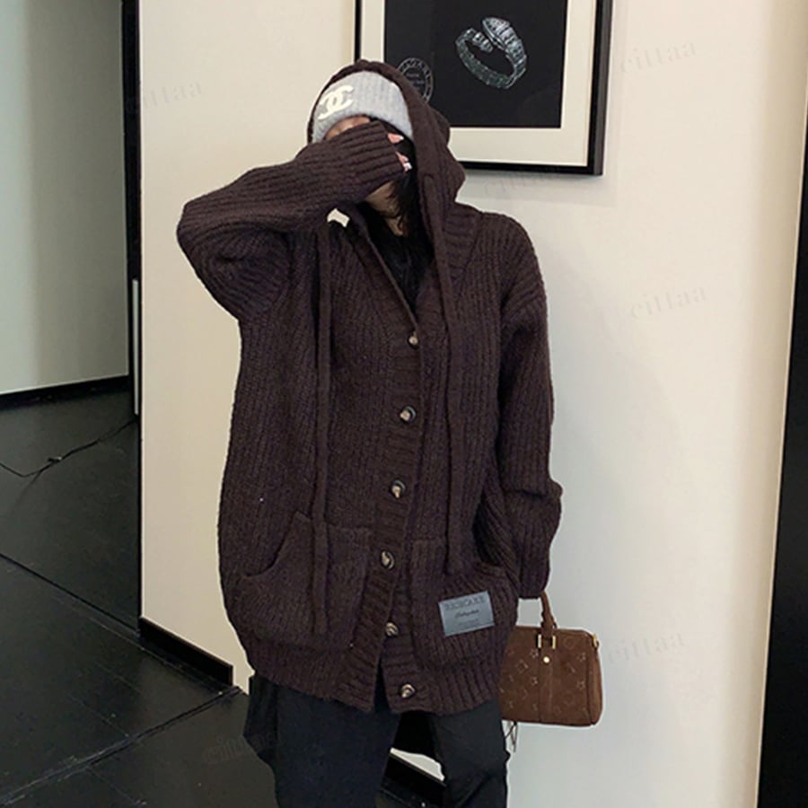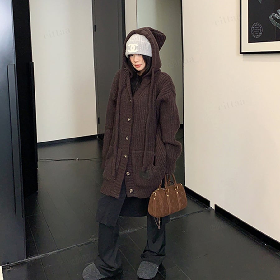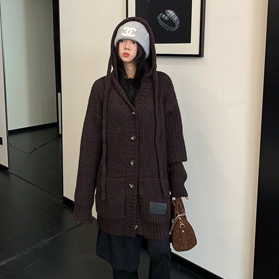 大人カジュアルに決まるフード付きニットカーディガン♡
