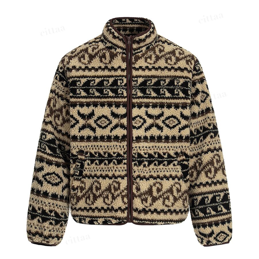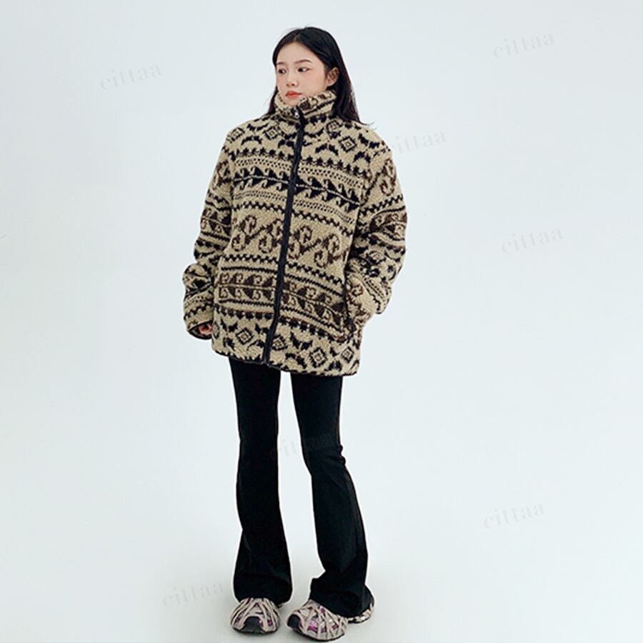 ★予約★D-741 2025秋新作♡2WAYノルディック柄フリースボアハイネックブルゾン ベージュブラウン