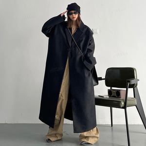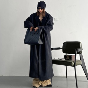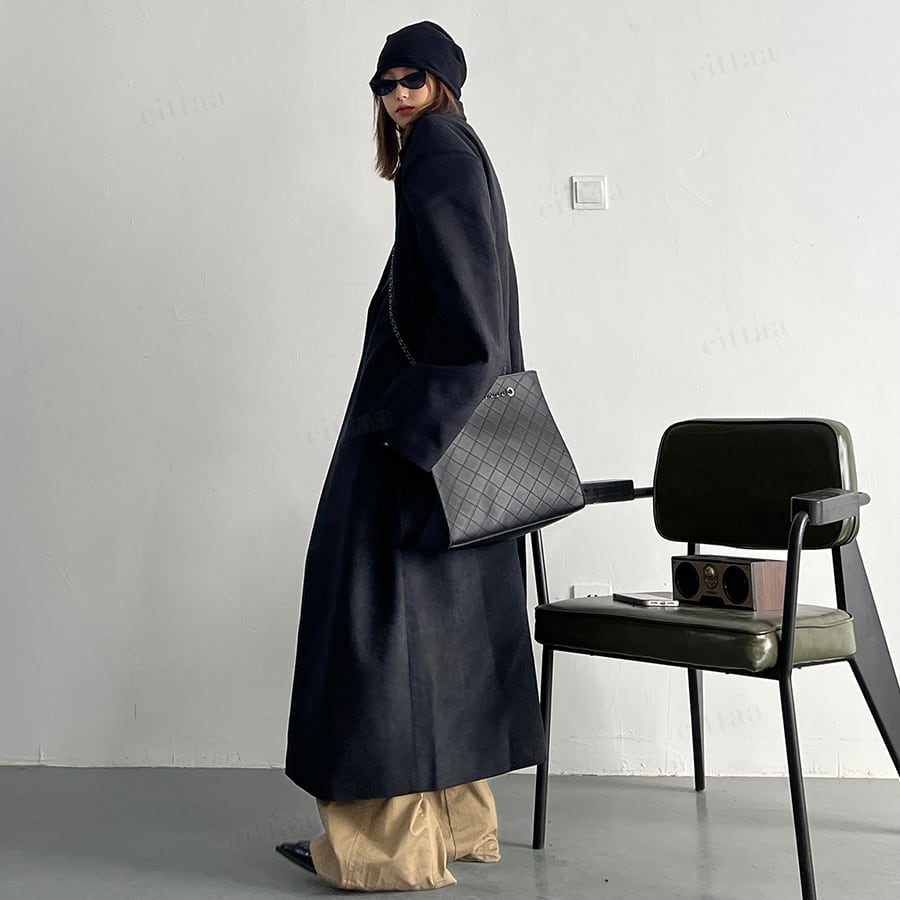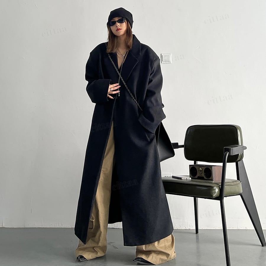 ★予約★D-742 2025秋新作♡裏地キルティングロングチェスターコート ブラック