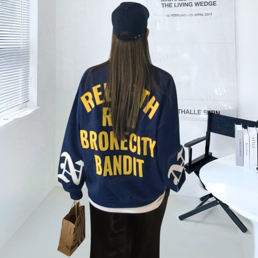 Y-4754 2025秋新作♡REBIRTHパッチワークロゴスウェット ネイビー 1111