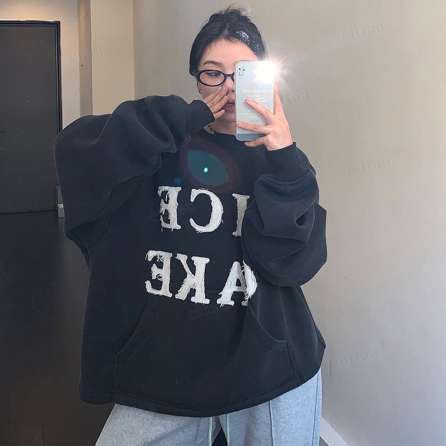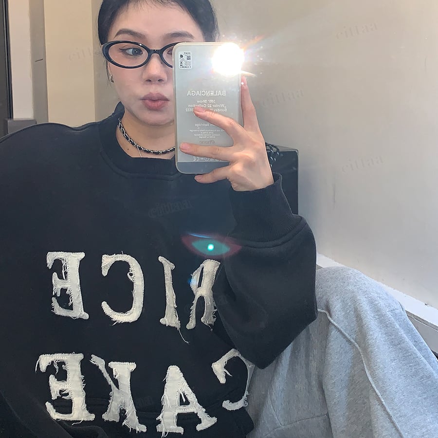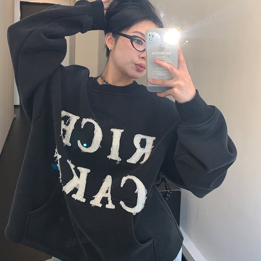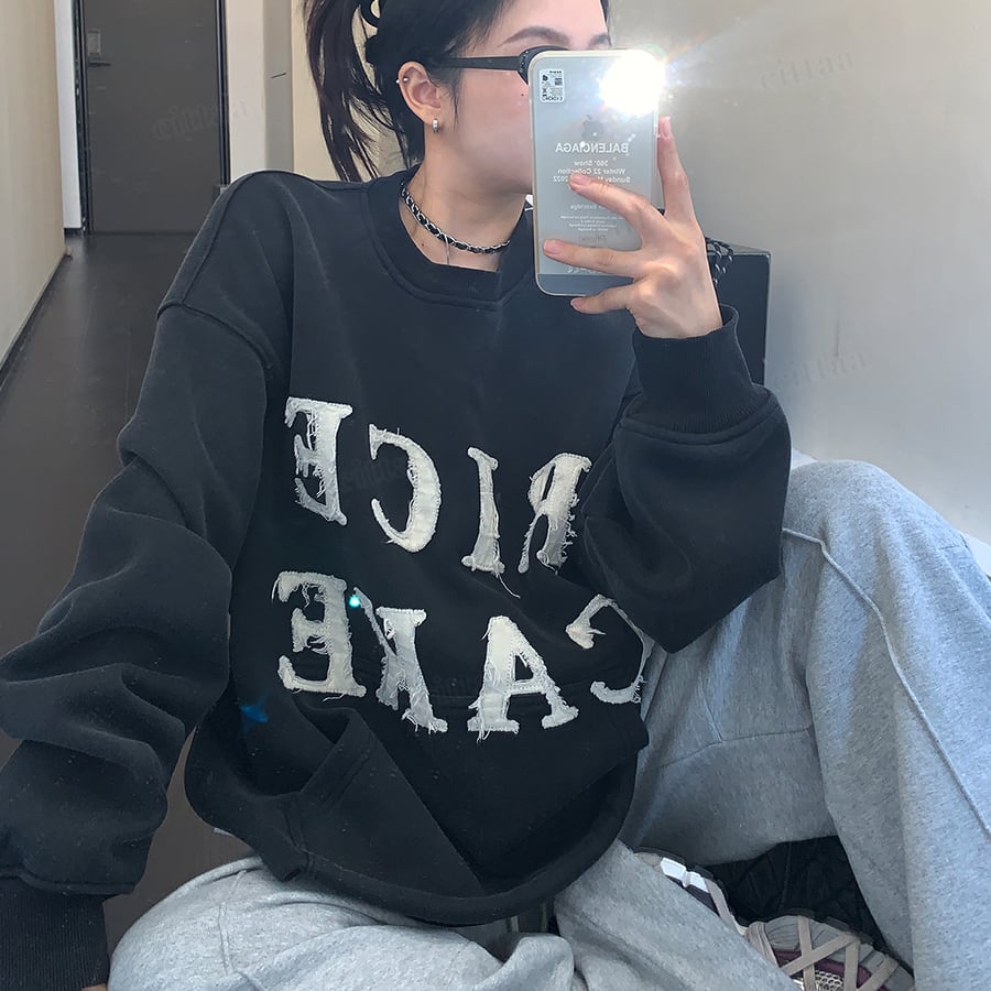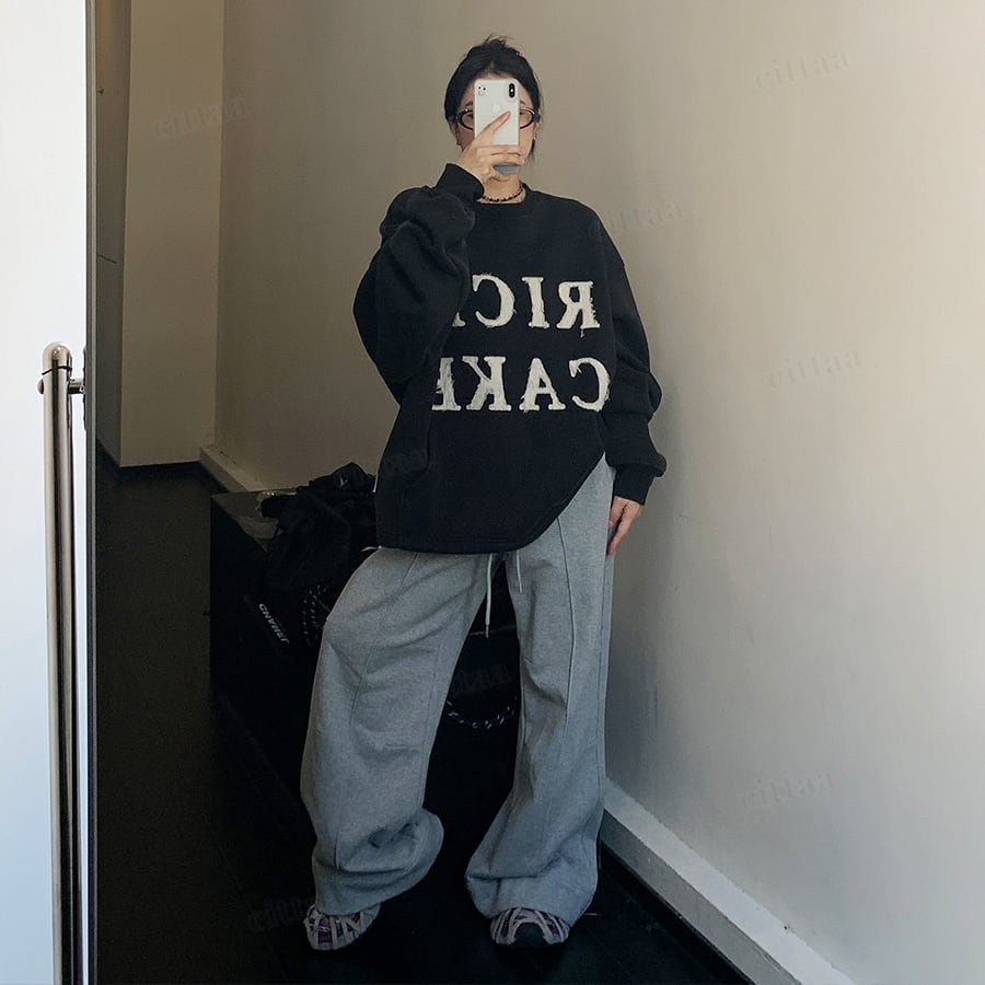 ★予約★D-752 2025秋冬新作♡RICECAKEパッチワークロゴスウェット ブラック