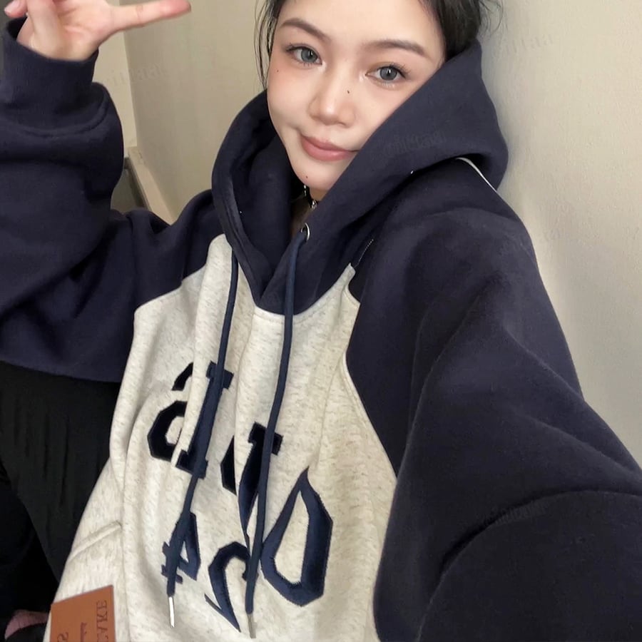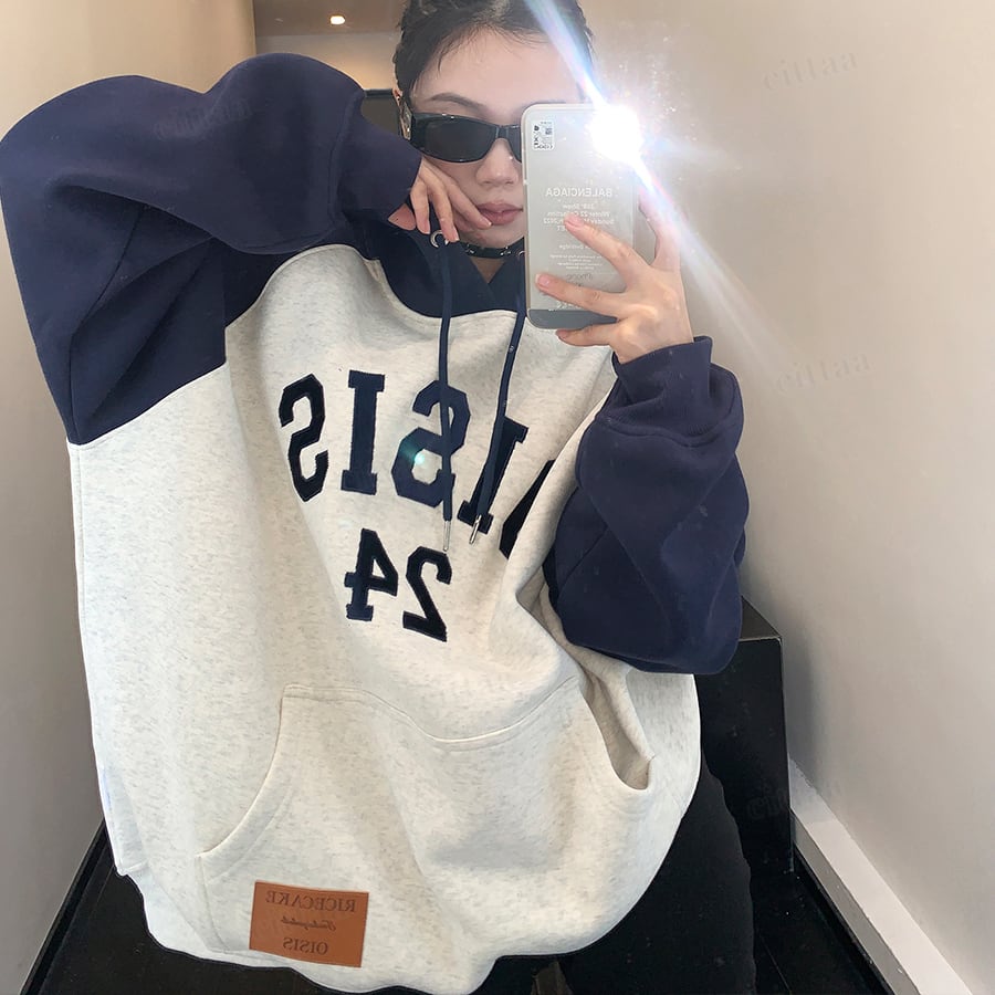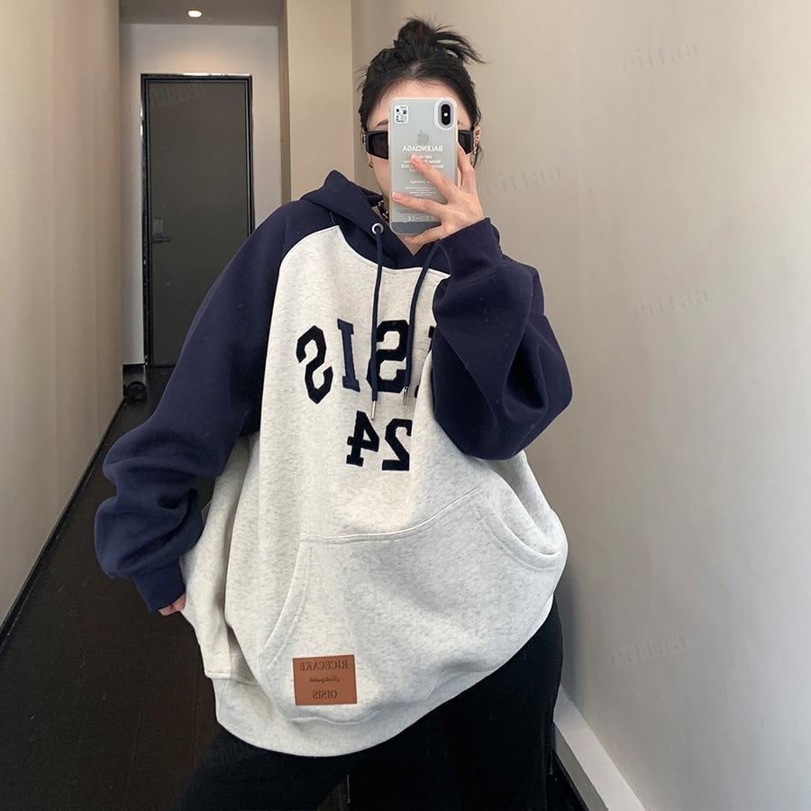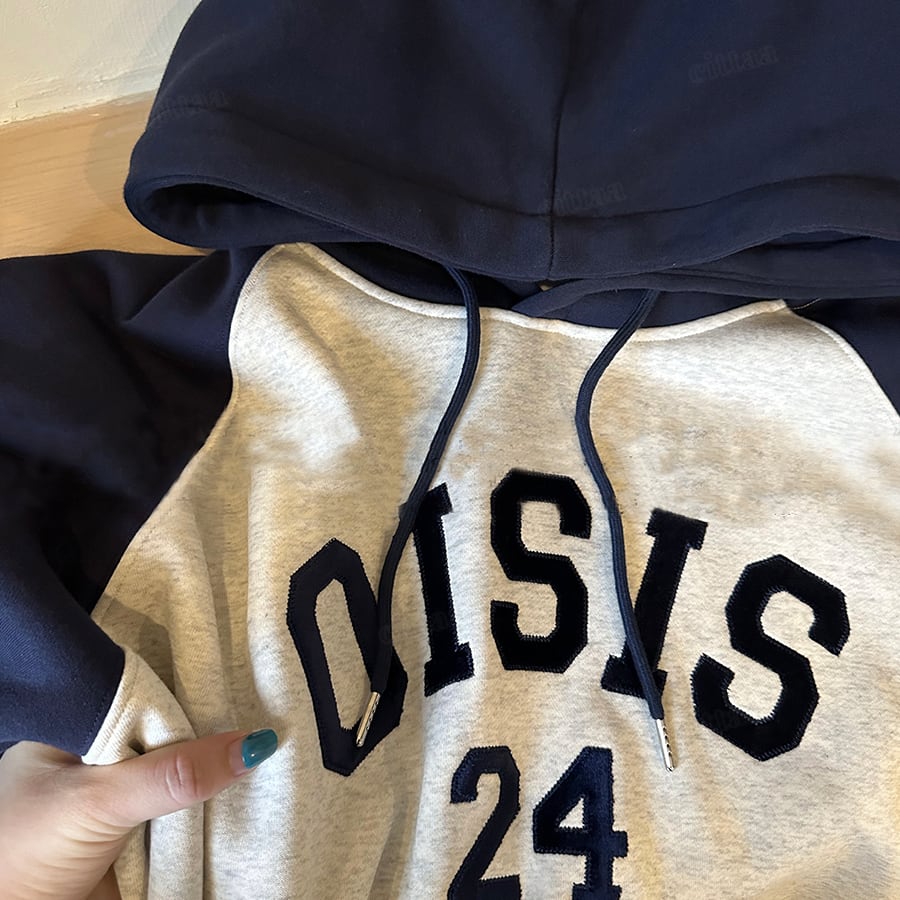 ★予約★D-754 2025秋冬新作♡OISISベルベット刺繍ラグランフーディー グレー