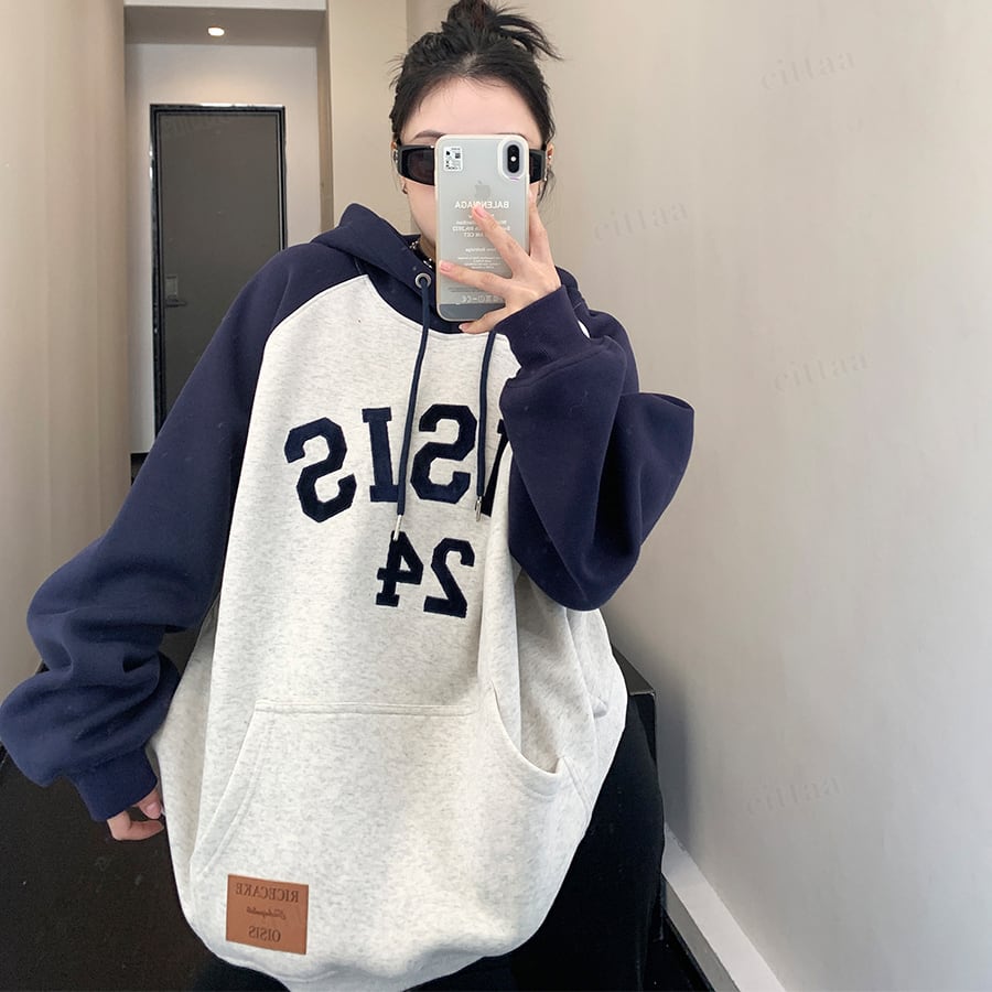 ベルベット刺繍ロゴで格上げ大人のラグランフーディー♡