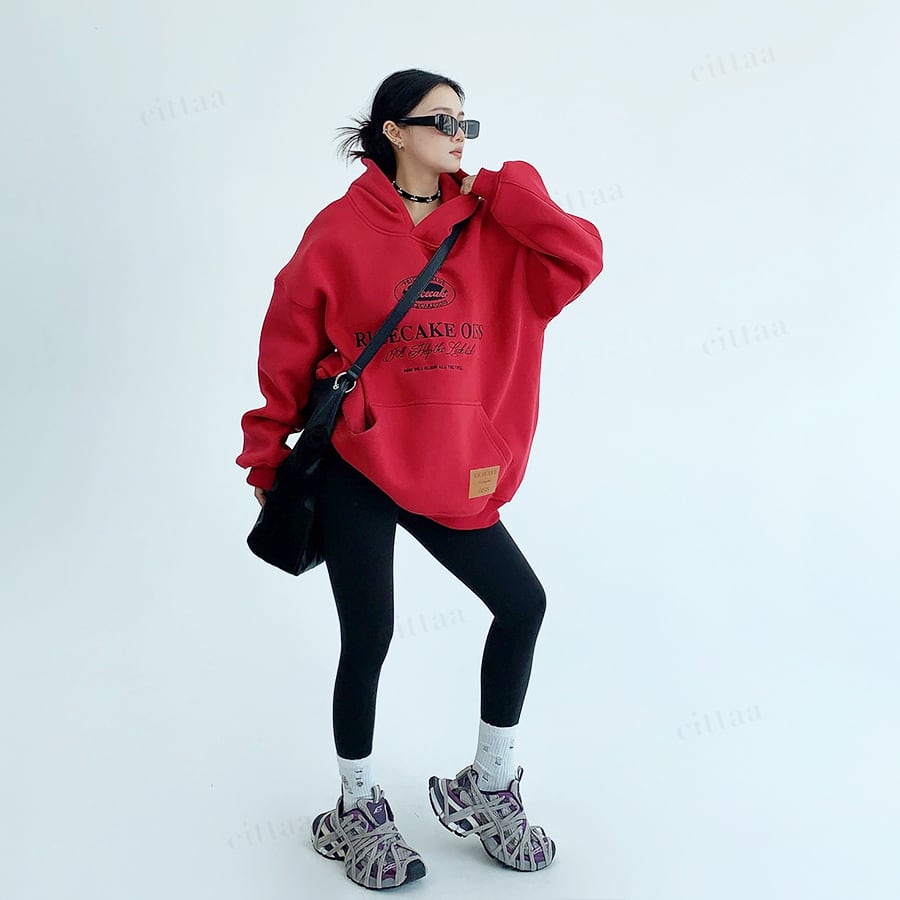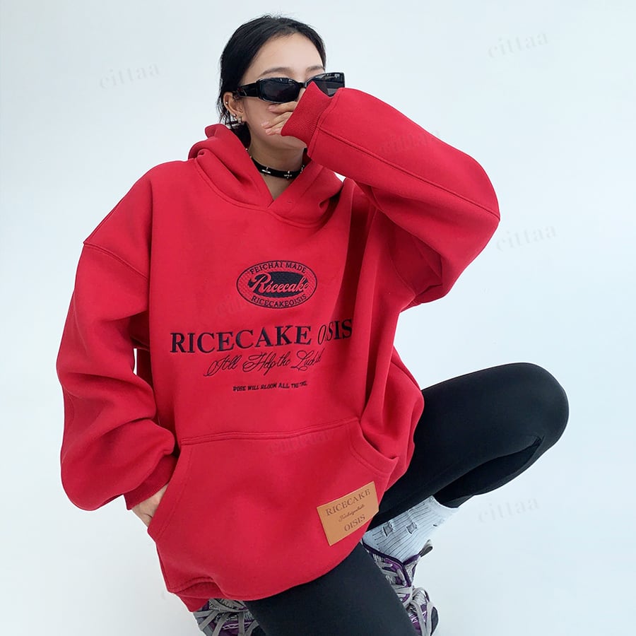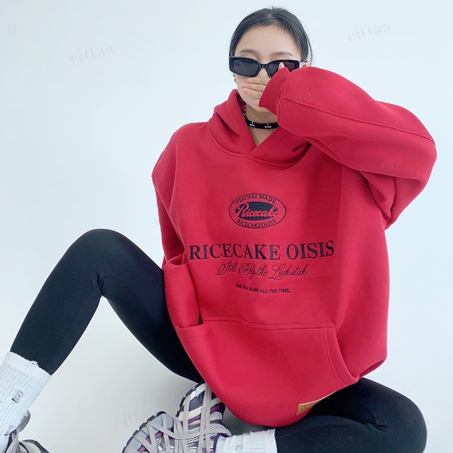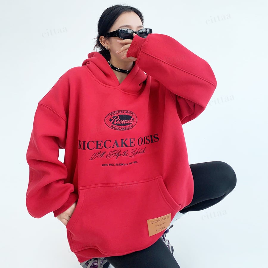 ★予約★D-756 2025秋冬新作♡Ricecake刺繍ロゴフーディー レッド
