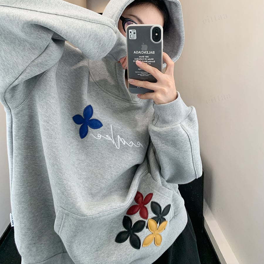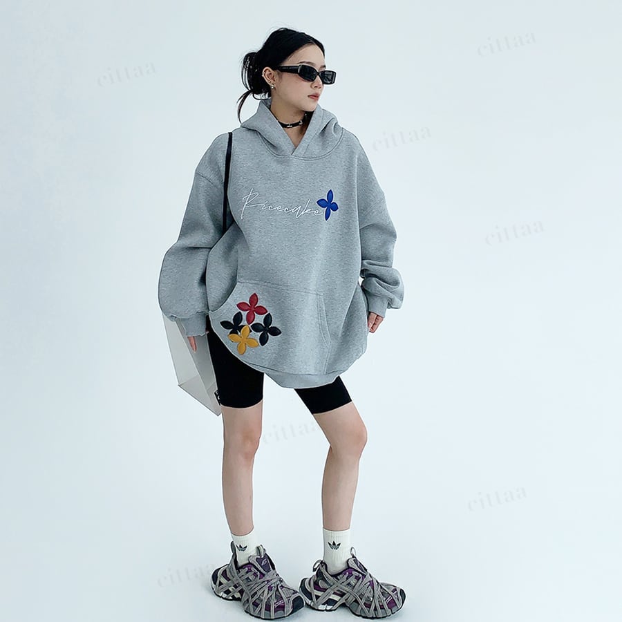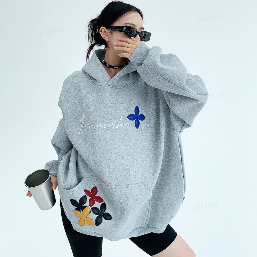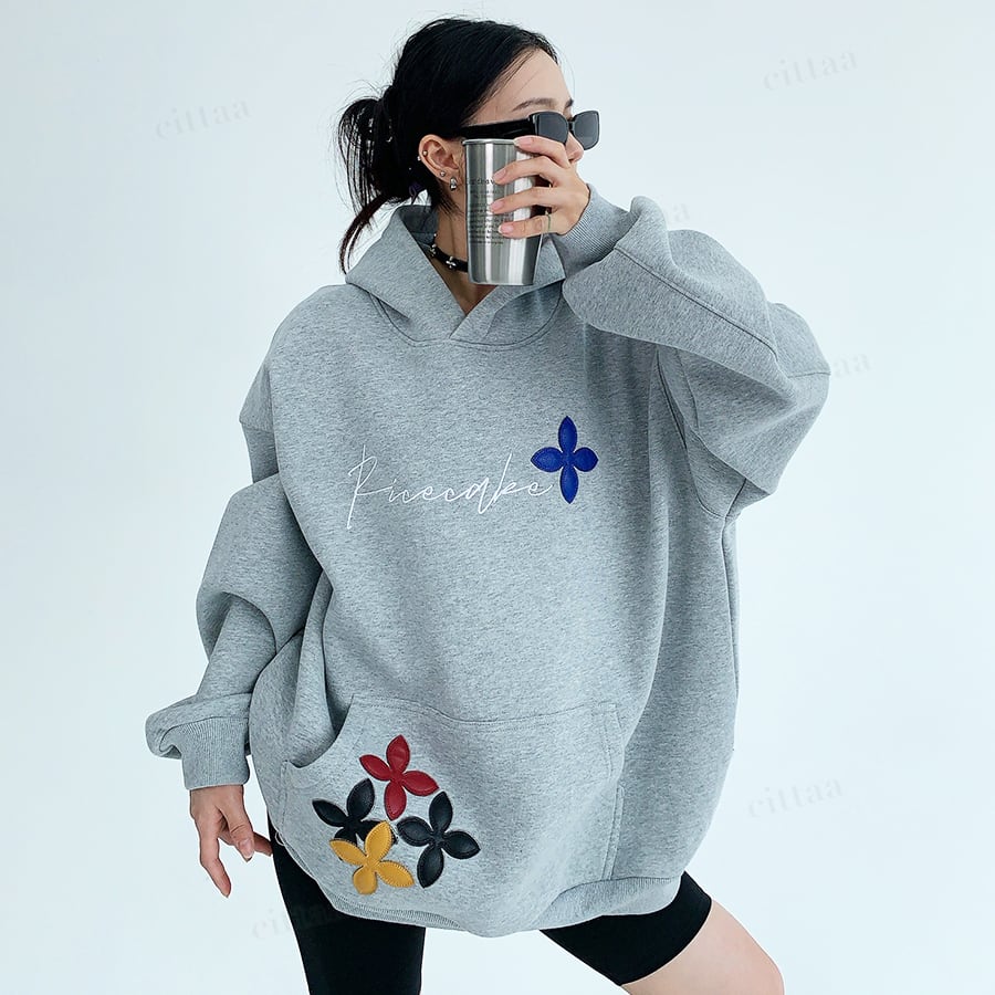 ★予約★D-757 2025秋冬新作♡Ricecakeクロスパッチフーディー グレー