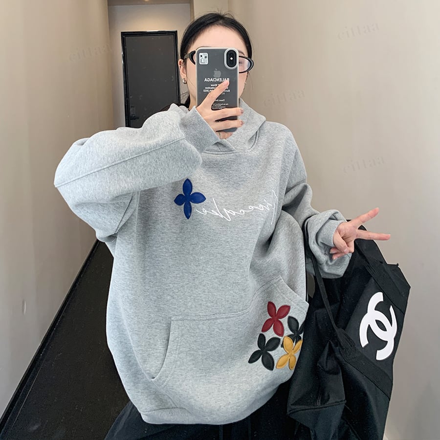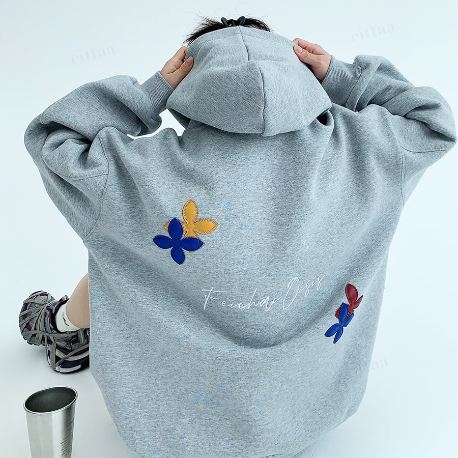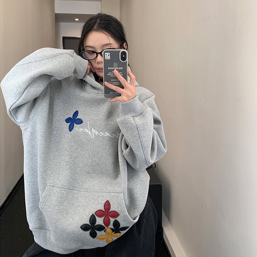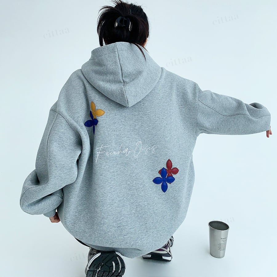 ★予約★D-757 2025秋冬新作♡Ricecakeクロスパッチフーディー グレー