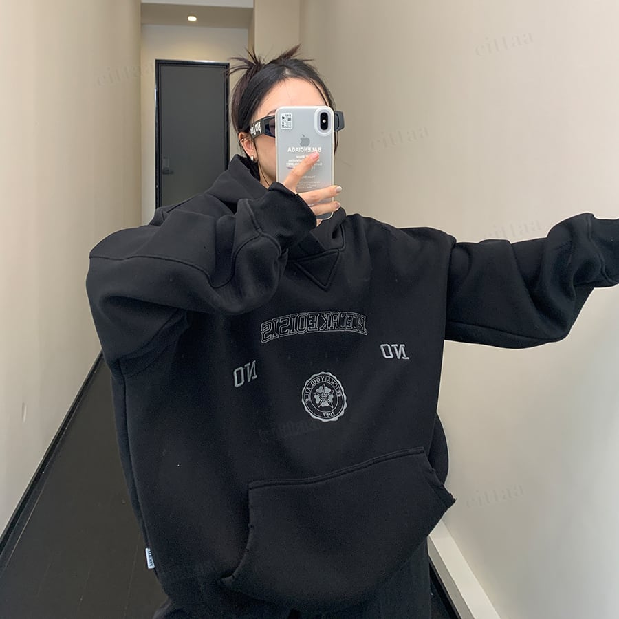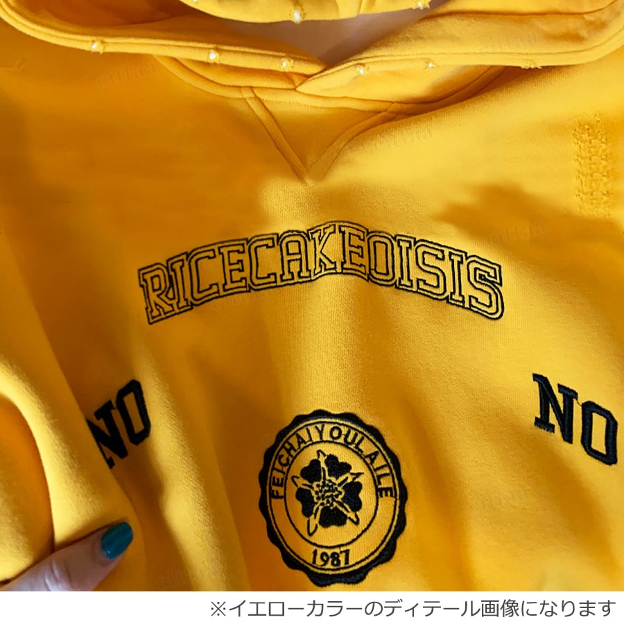 ★予約★D-758 2025秋冬新作♡RICECAKEカレッジロゴダメージ加工フーディー ブラック