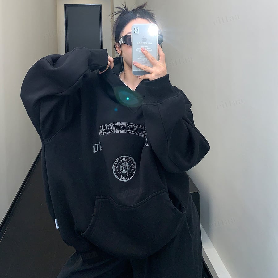 こなれ感たっぷりダメージデザインで差がつくカレッジ刺繍ロゴフーディー♡