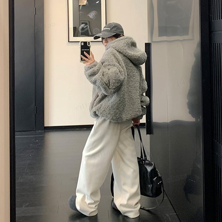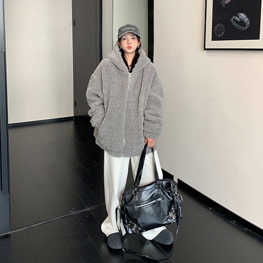 ふんわり柔らかいボア素材で、着るだけで秋冬コーデがぐっと旬顔に。裏地のチェック柄がさりげないアクセントになり、脱いだときやチラ見せでもお洒落に楽しめます。