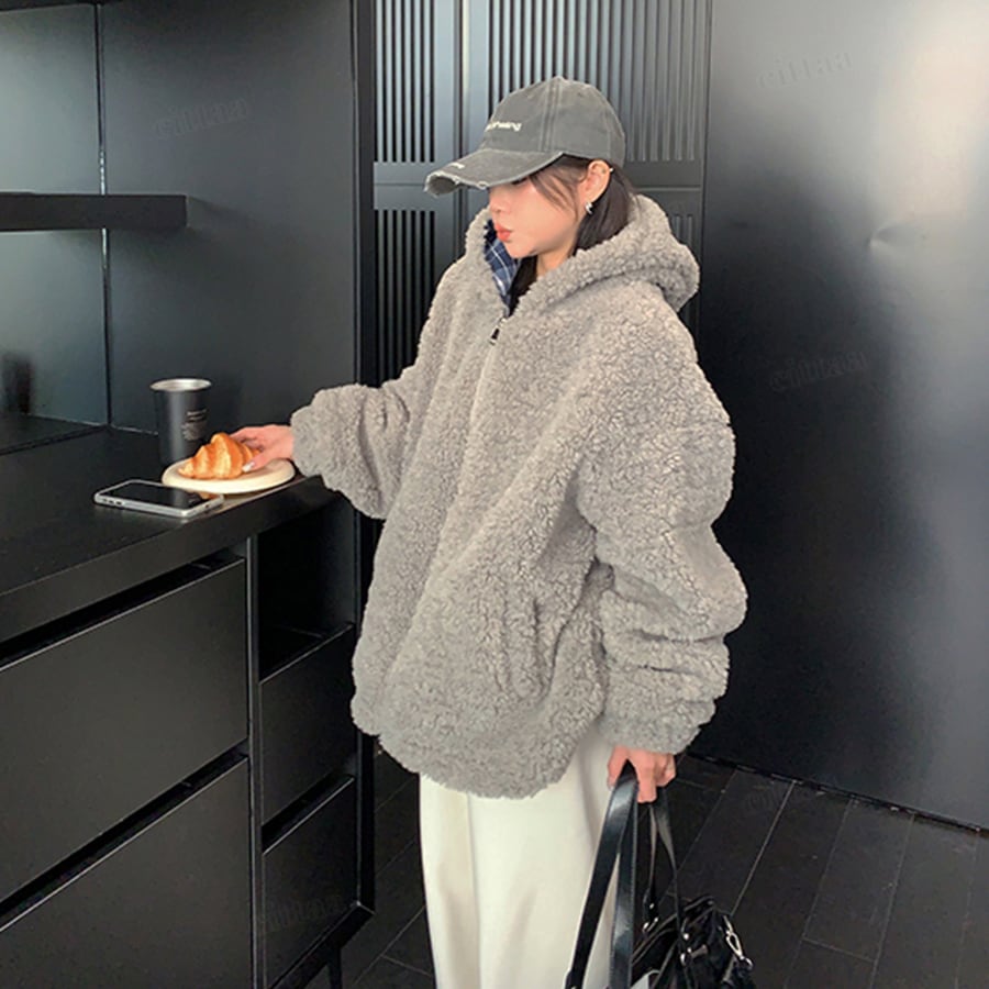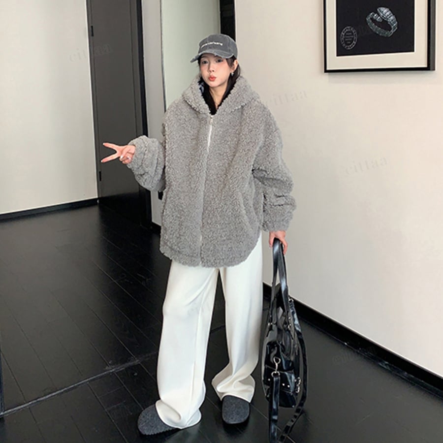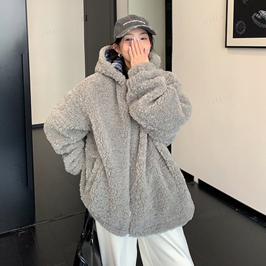 ★予約★D-770 2025秋冬新作♡裏地チェック柄ボアジップアップブルゾン グレー