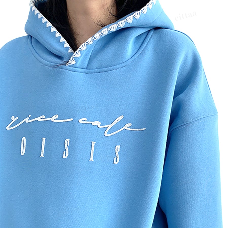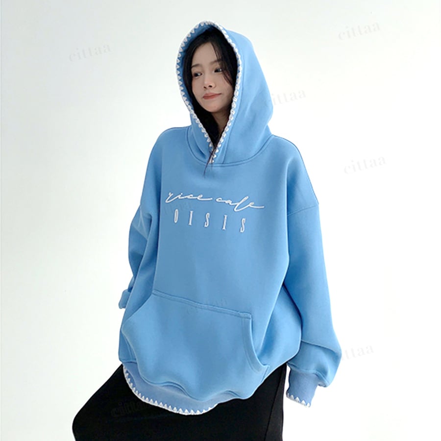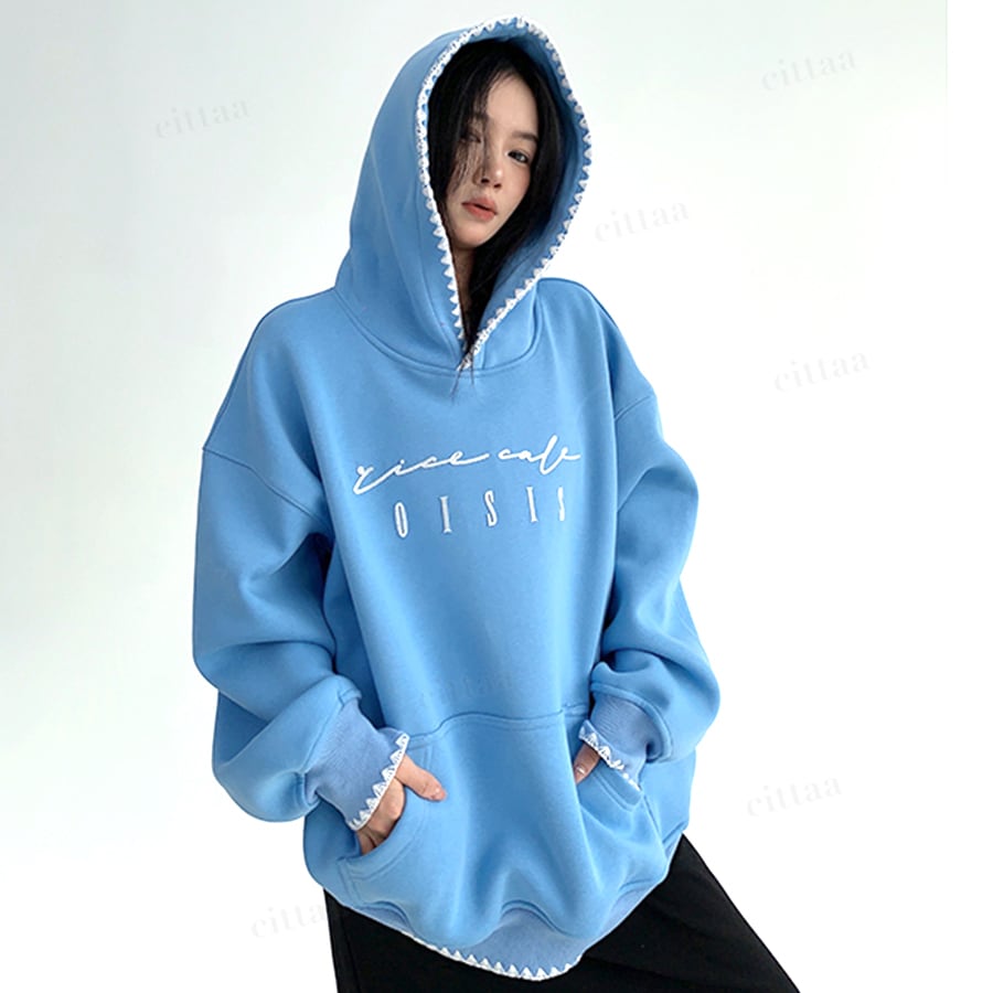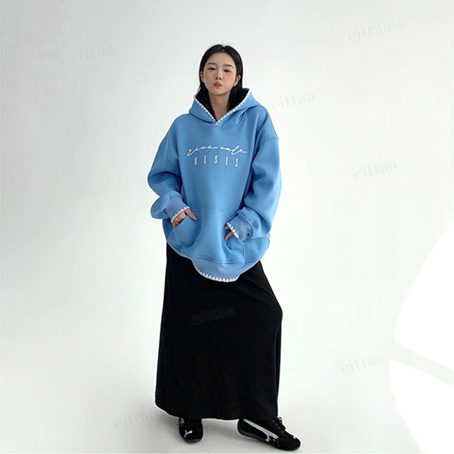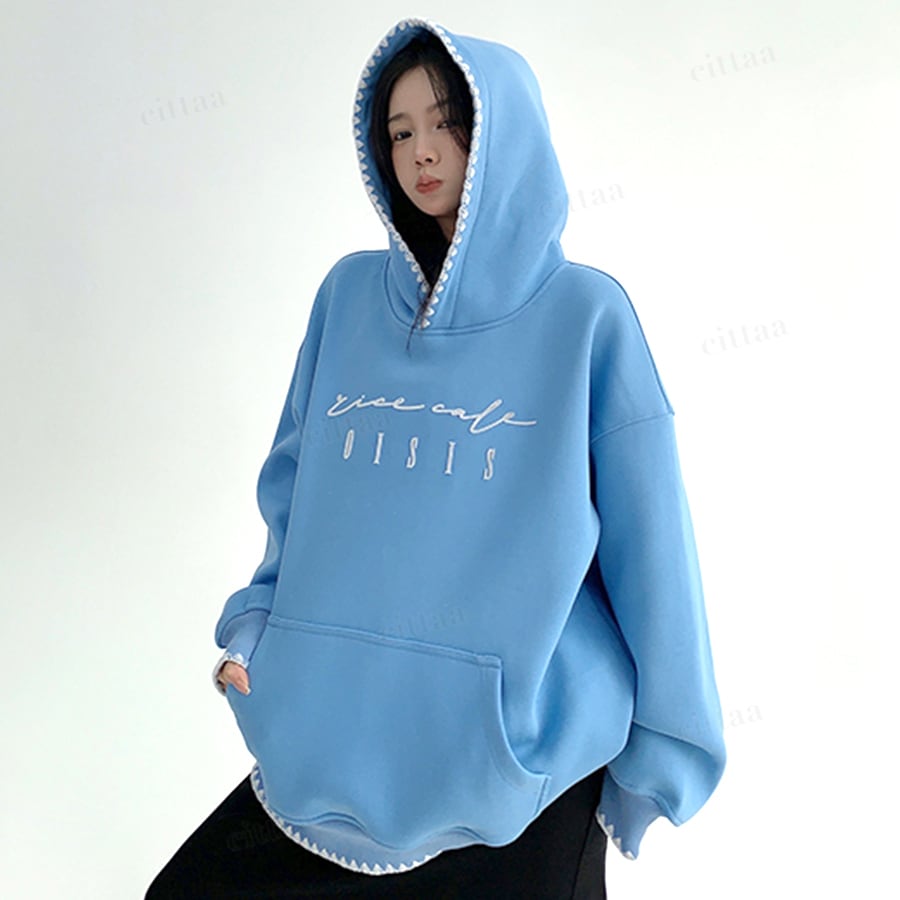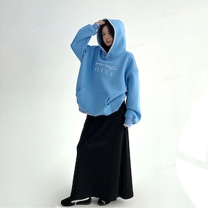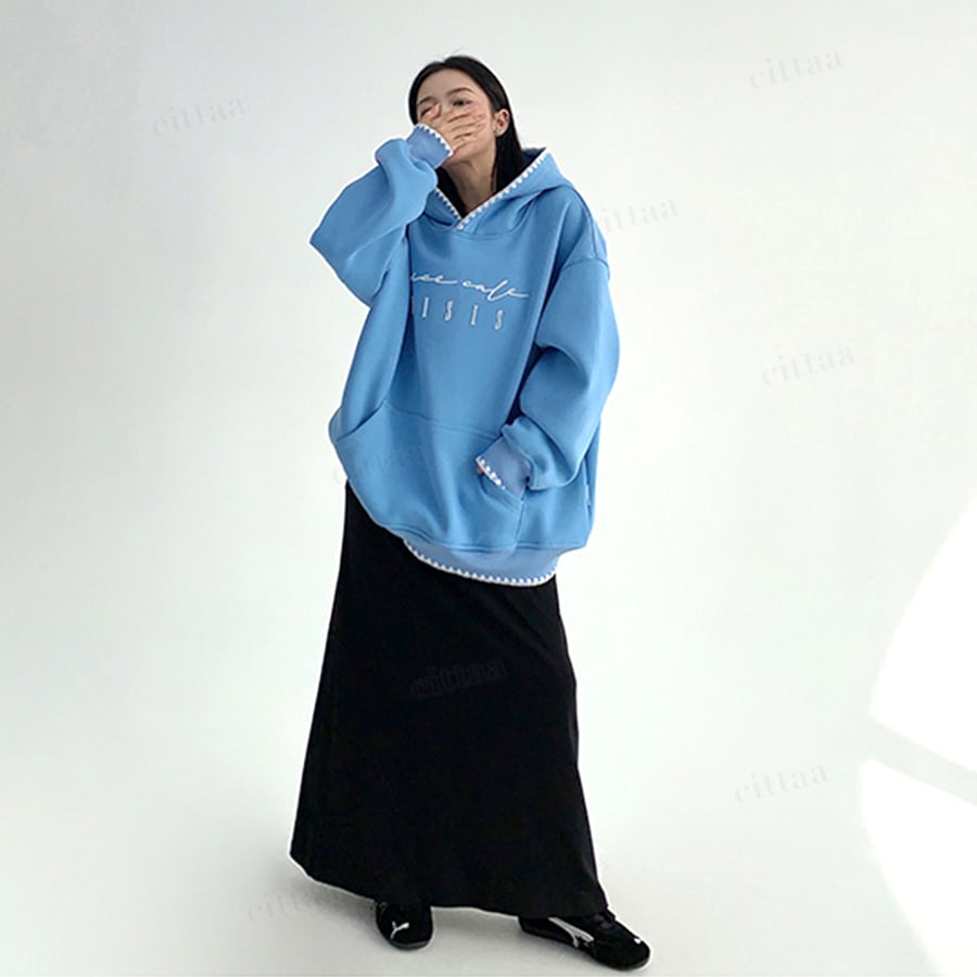★予約★D-772 2025秋冬新作♡ricecake刺繍ロゴ配色ステッチフーディー ブルー