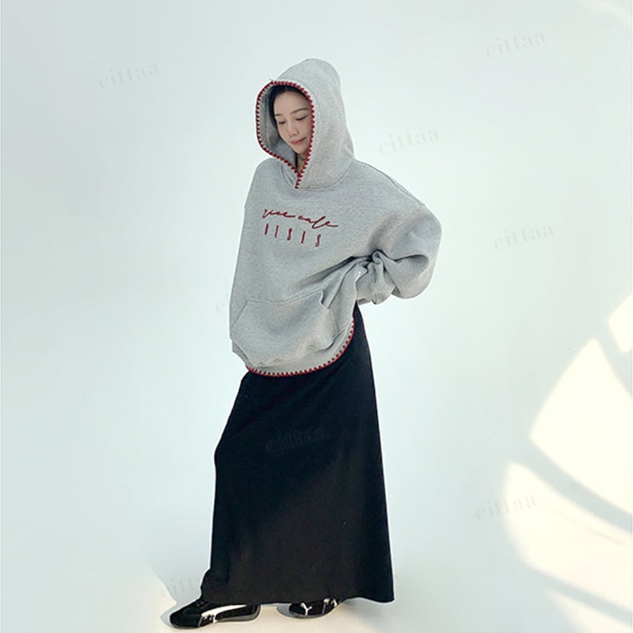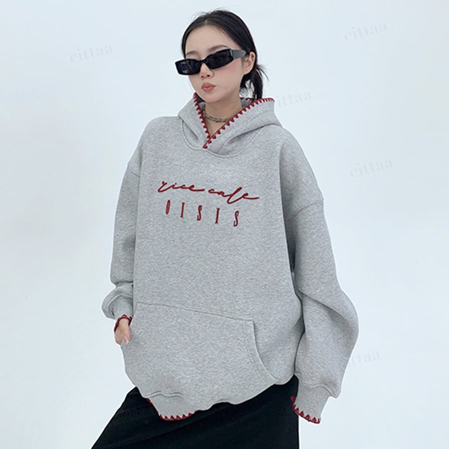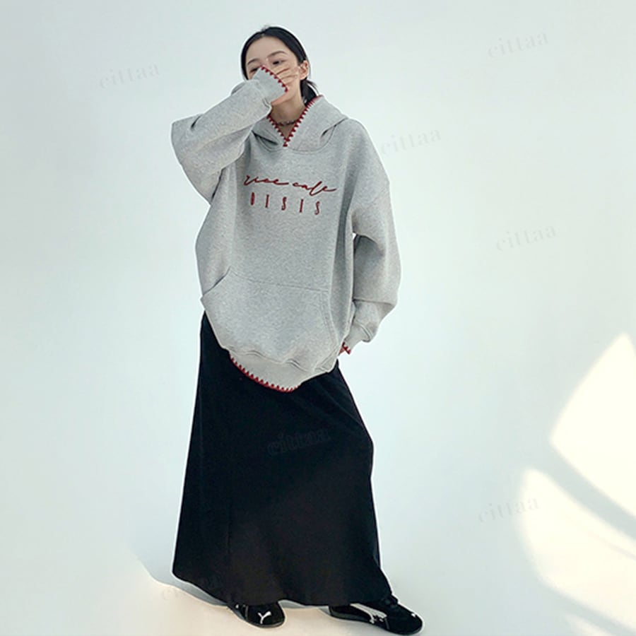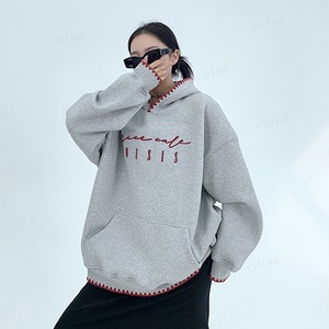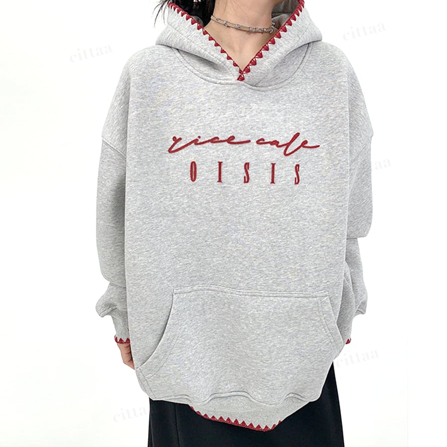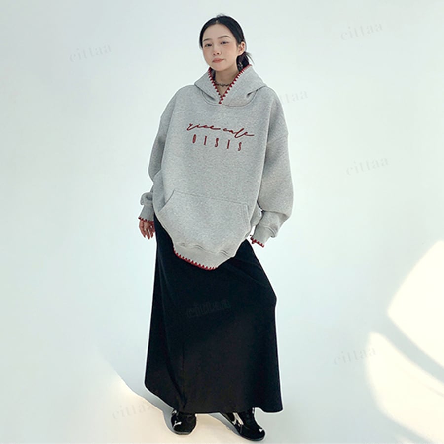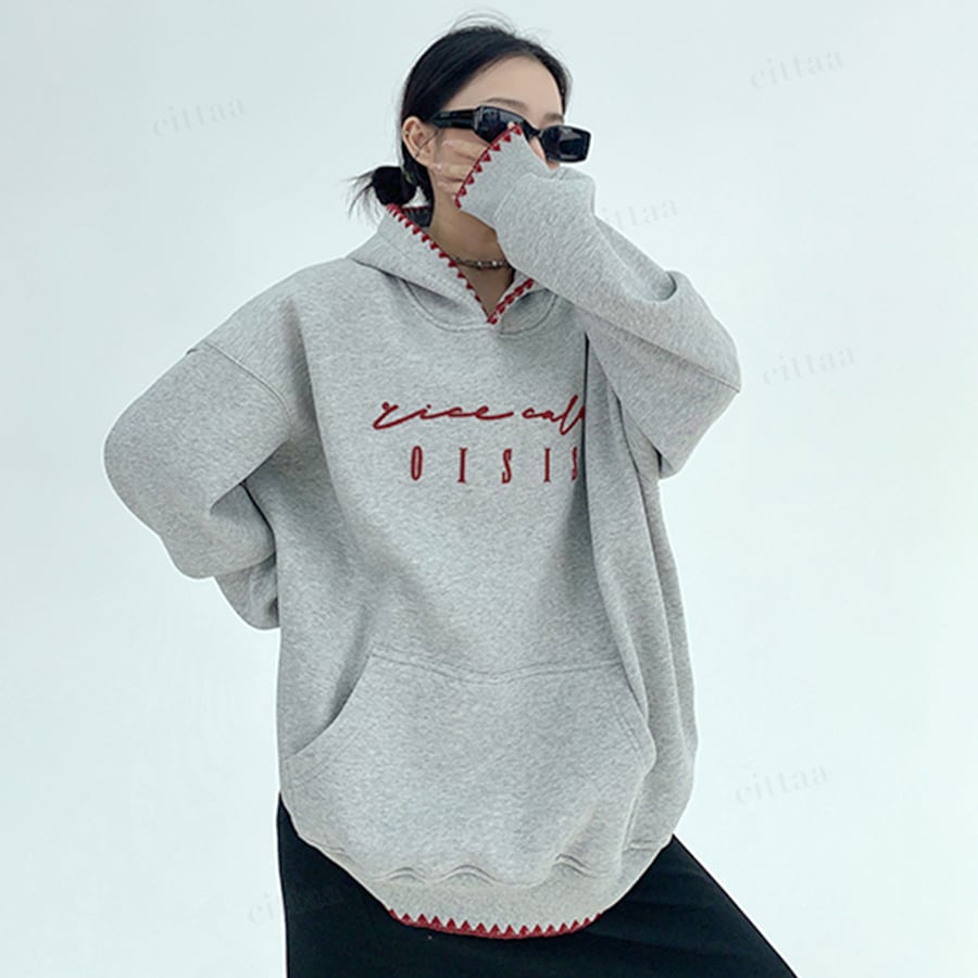 ★予約★D-772 2025秋冬新作♡ricecake刺繍ロゴ配色ステッチフーディー グレー