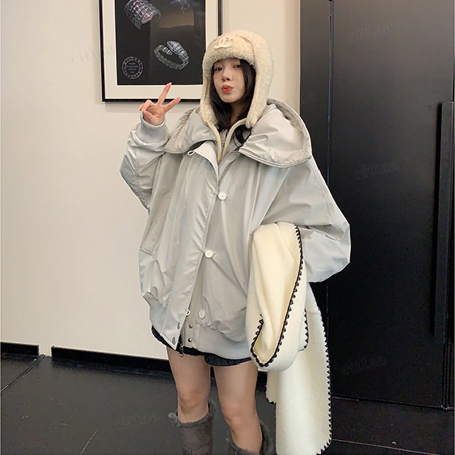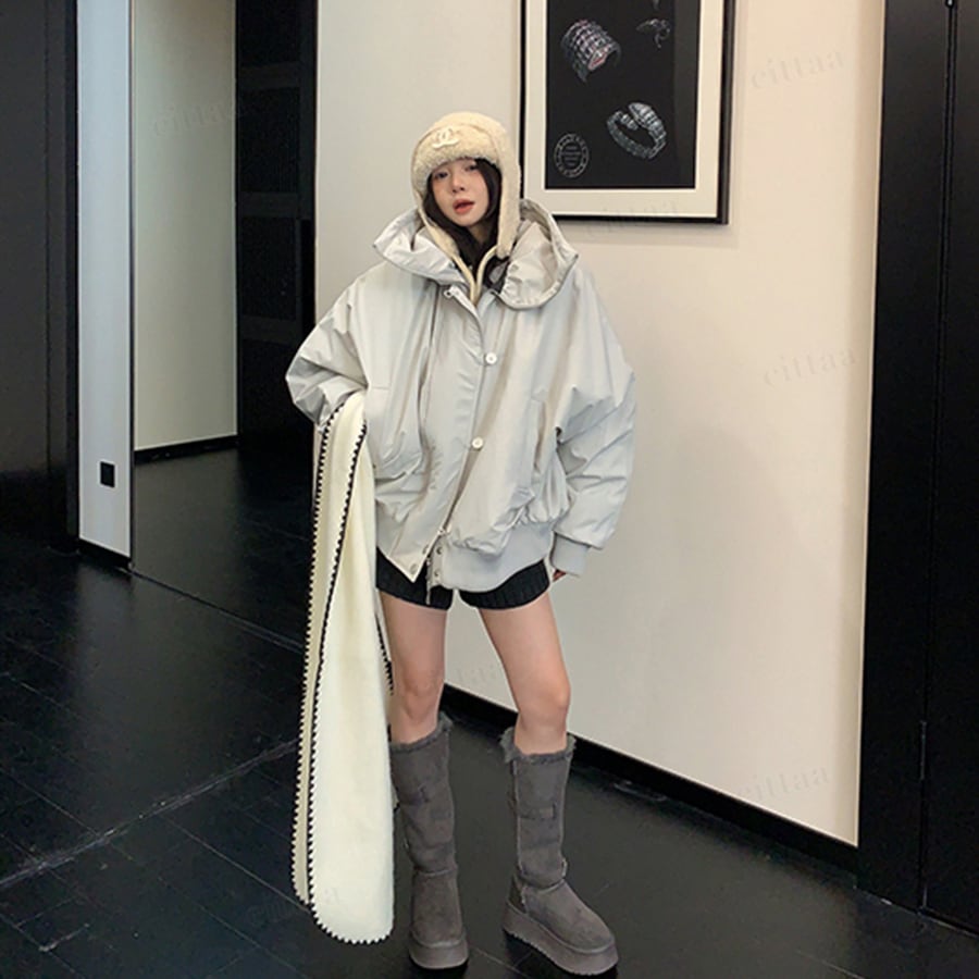 ★予約★D-774 2026年新作♡BIG襟オーバーサイズ中綿ブルゾン ライトグレー