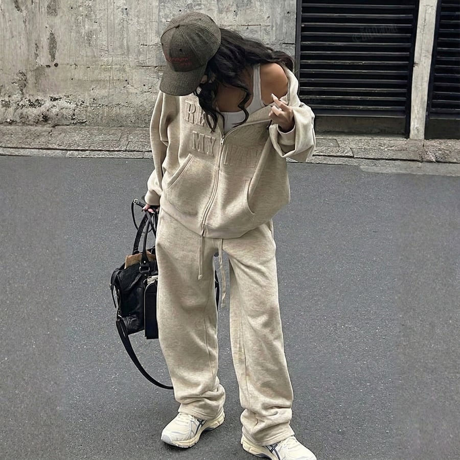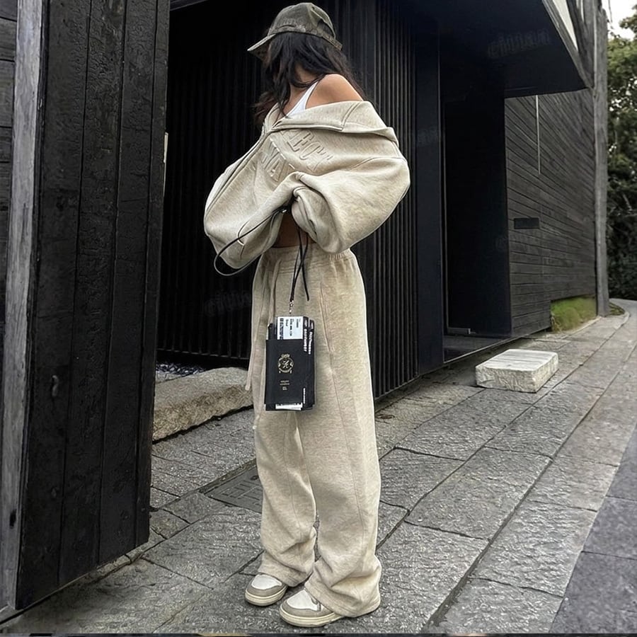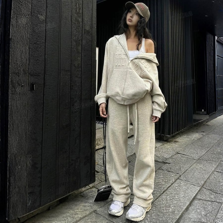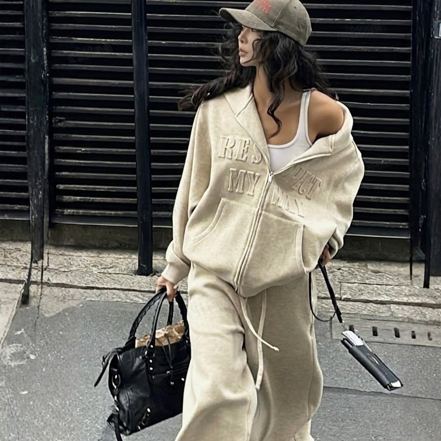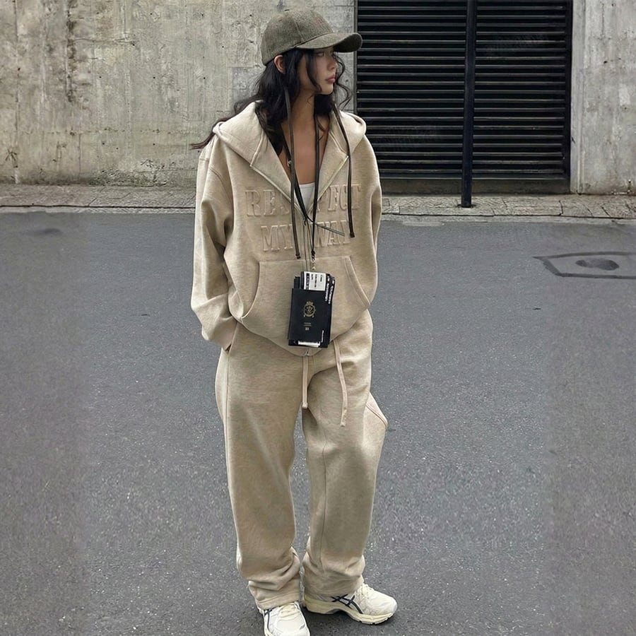 【即納】D-810 2026新作♡【上下セット】RESPECT型押しロゴセットアップ アプリコット
