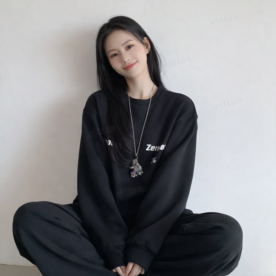 【即納】D-811 2026新作♡【上下セット】Zero英字プリントセットアップ ブラック