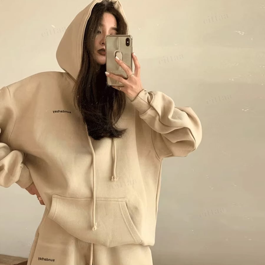 【即納】D-812 2026新作♡【上下セット】sundarbayロゴセットアップ アプリコット