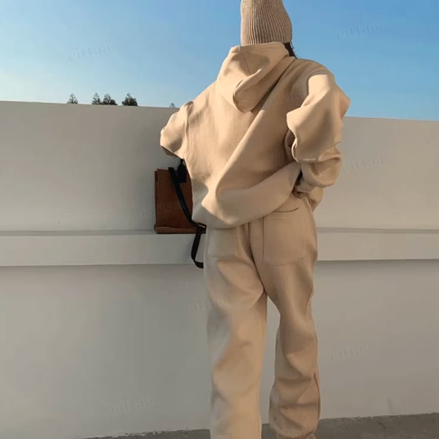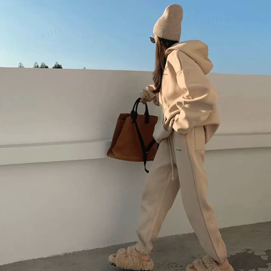 ゆるっとしたルーズ感が今っぽく、抜け感のあるストリートスタイルに。パンツはウエストゴム&調整紐付きでストレスフリーな穿き心地。リラックスしたいおうち時間からちょっとしたお出かけまで活躍します。