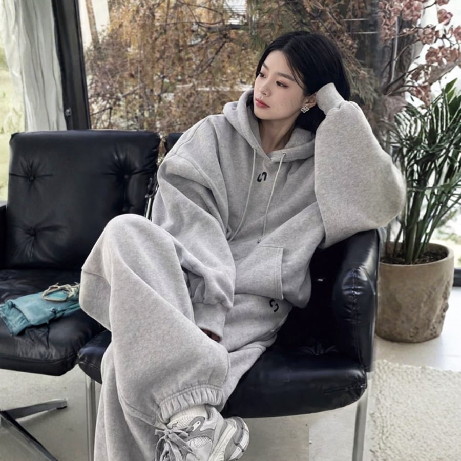 ★予約★D-813 2026新作♡【上下セット】フロントロゴセットアップ ライトグレー